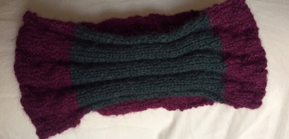 So instead I made him a cowl with the remaining wool from the hat I knitted him last year. I didn’t follow a pattern as such, just used a 4×4 rib and on the side and back I moved the ribbing over 2 stitches so it created a wavy line, then on the front I kept the ribbing in line, so it is not as wide under his chin. Technically he can reverse it and have the narrrow side at the back. He can decide what works best when Autumn arrives. The yarn is from Wool and the Gang and is called Feeling Good Yarn. It is Aran weight but extremely light (Baby Alpaca 70% / Merino 7% and Nylon 23%). It is very fluffy, soft and hopefully warm. For the hat I made him in winter I did follow a pattern.