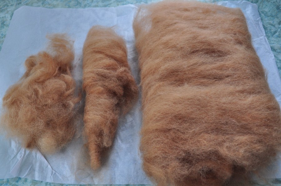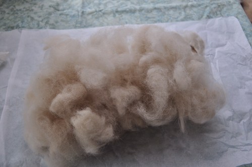 The nice thing about alpacas is that while they’re extremely dirty/dusty, they don’t have the lanolin in the fiber that needs to be scoured out.