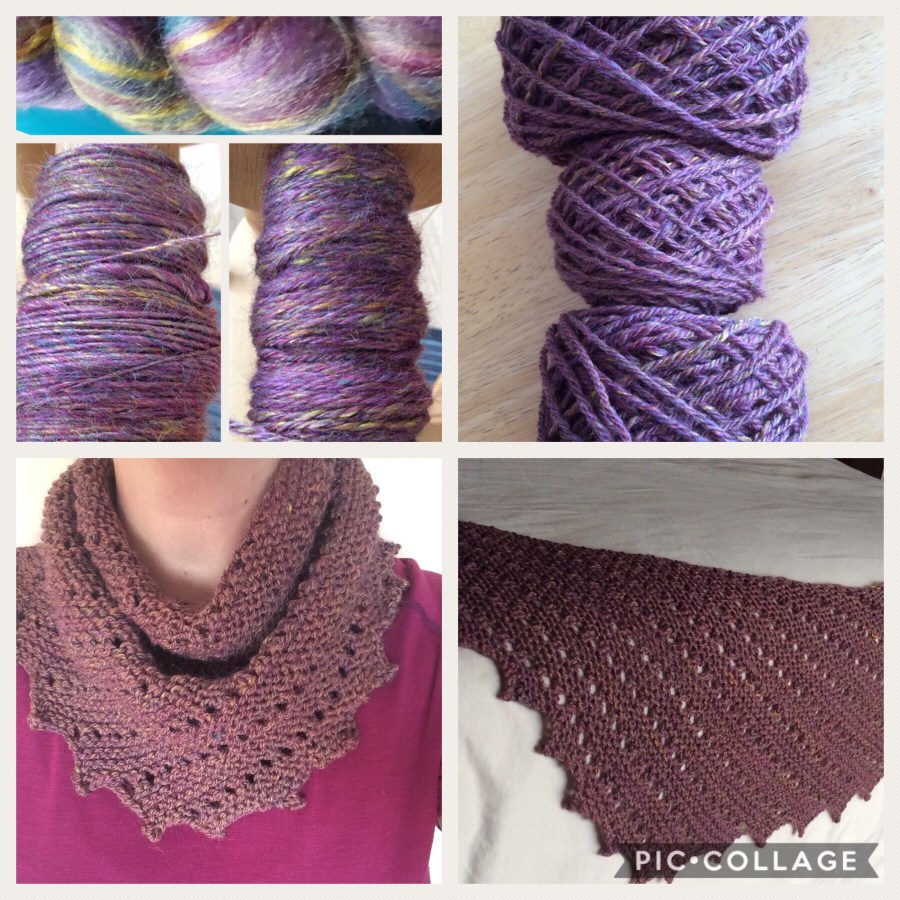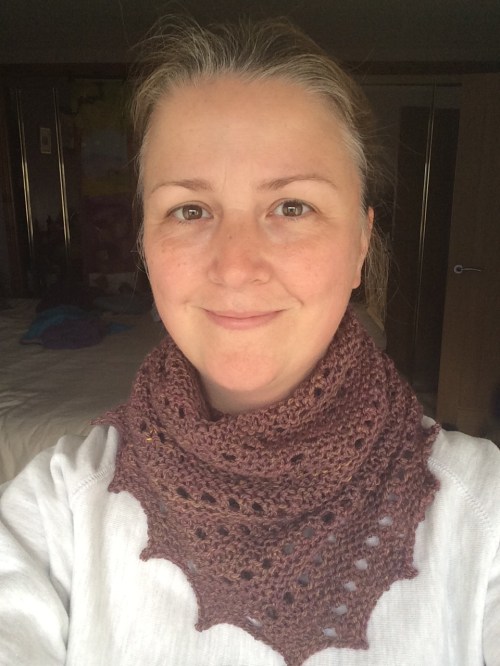 I finished my 3rd Hitchhiker scarf (albeit with some pattern variations shown on my Ravelry Project page). I love this pattern because I have memorised it (not hard, its just 8 rows repeated); you easily can tell where you are, so you can squeeze in a row when you have a few minutes; and you can make the scarf any size you want, so ideal for homespun yarn you aren’t sure how much there is. There is something pretty very cool about making something with yarn you have spun yourself. This is the first garment I have made with my homespun yarn and now the evenings are getting colder I will have a chance to wear it!