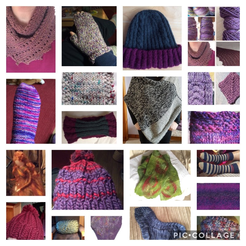 🧦 really warm hat, quick and bulky mittens, Allistar’s alpaca hat, purple fingerless mittens, big wool colour hat for Elaine, 2 x cable headbands, rasta fasta hat, swirly squishy hat,
