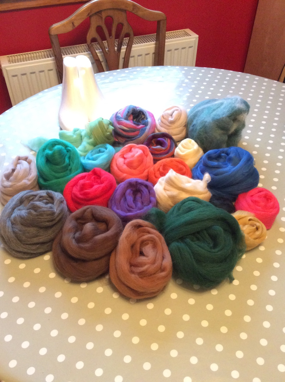 On Friday evening a large order of pre-felt arrived so I can start to make some more. I need to make some more 20cm ones for the shop as they are running low. As I was doing a big order of pre-felt I did add a few other bits of fibre to my shopping basket! I bought myself some superfine merino to dye and make myself a fancy scarf and go wild with splashes of sari silk. A christmas present for myself!