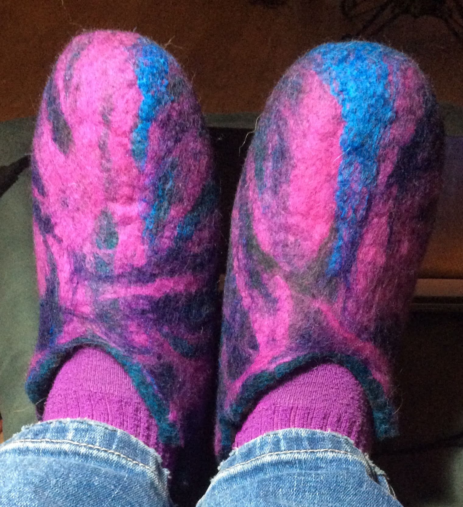 All that yummy fiber and such pretty colors. I am so happy to hear you got the slippers you wanted. It was sad to see the first ones were no good.