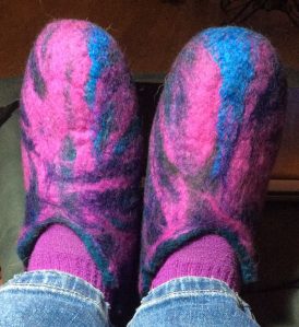 I managed to destroy my slippers I made last weekend. If you can bear to read such a sad tale there’s a separate post I did about them. However, on Friday I made a new pair that fit, yay! I’ve not sewn the sole on yet.