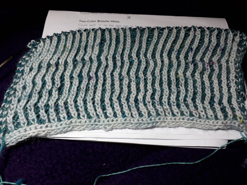 I can’t remember how I figured out how to read the brioche. I know it was a tip I got from a YouTube video. It was just something that was said it passing but I can’t remember what it was. It had to do with the color you’re using at the time. I’ll try to find the right video this evening and leave you the link:)