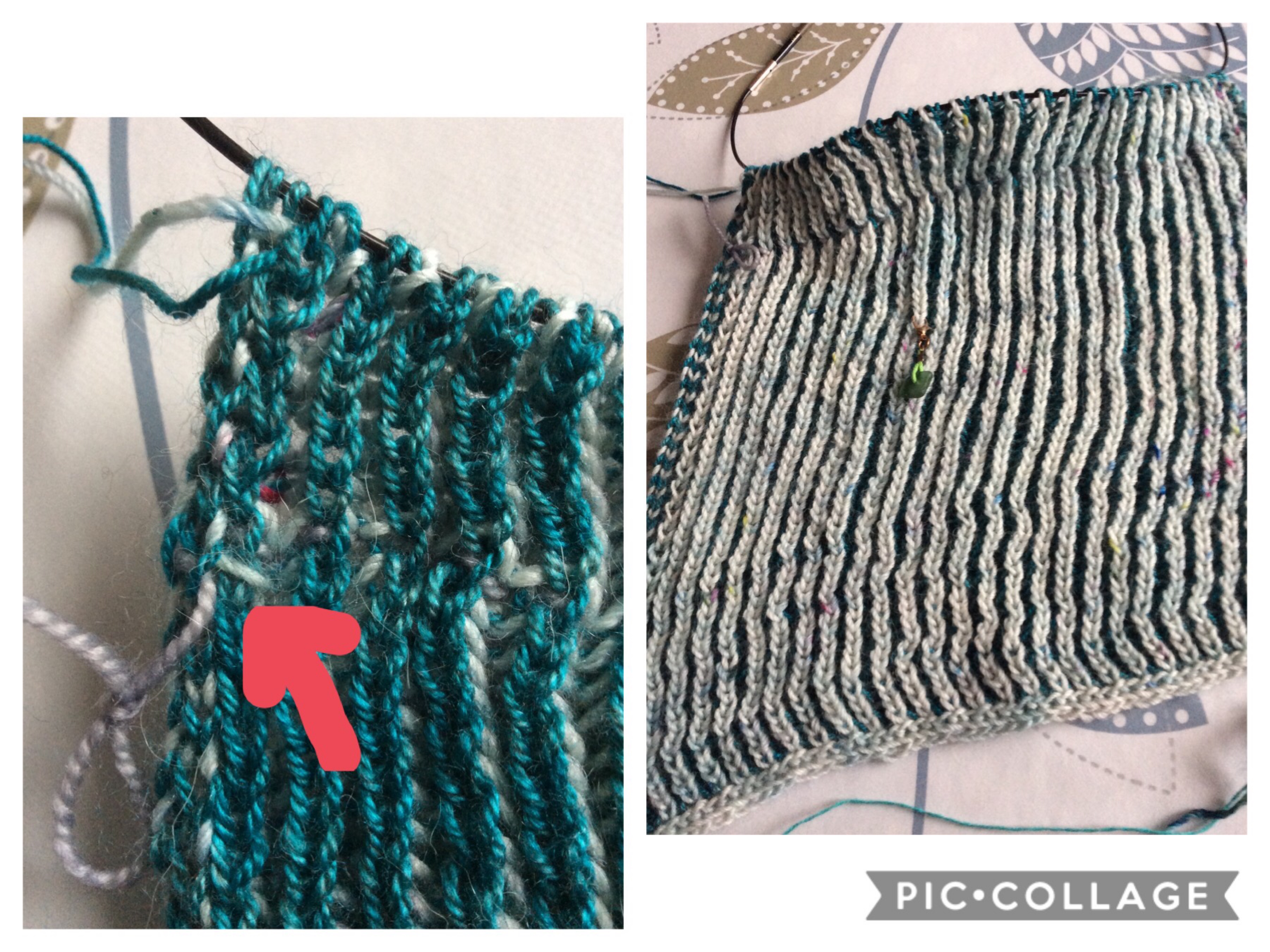 Grrrr! I made a mistake on my brioche scarf and carefully tinked back a few rows and re-did it only to see the mistake is still there!!! So now I think sod it, serves me right for stopping putting in safety lines. I’ve put one in after the mistake line and I’m almost at the point of starting the cabled section so that will have regular safety lines in. I think there’s only dishcloths that I’ve made without making a mistake! So I have lost a bit on my knitting mojo. The sea glass progress marker shows how little I have knit in the last 2 weeks. Is it normal for brioche to be a bit squint?