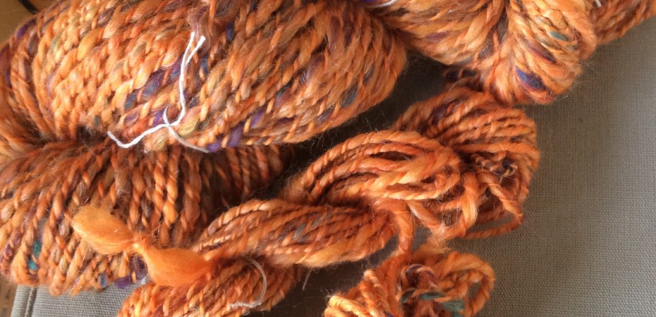 • Spin sufficient homespun fingering weight yarn in various colours to make a papillon shawl!