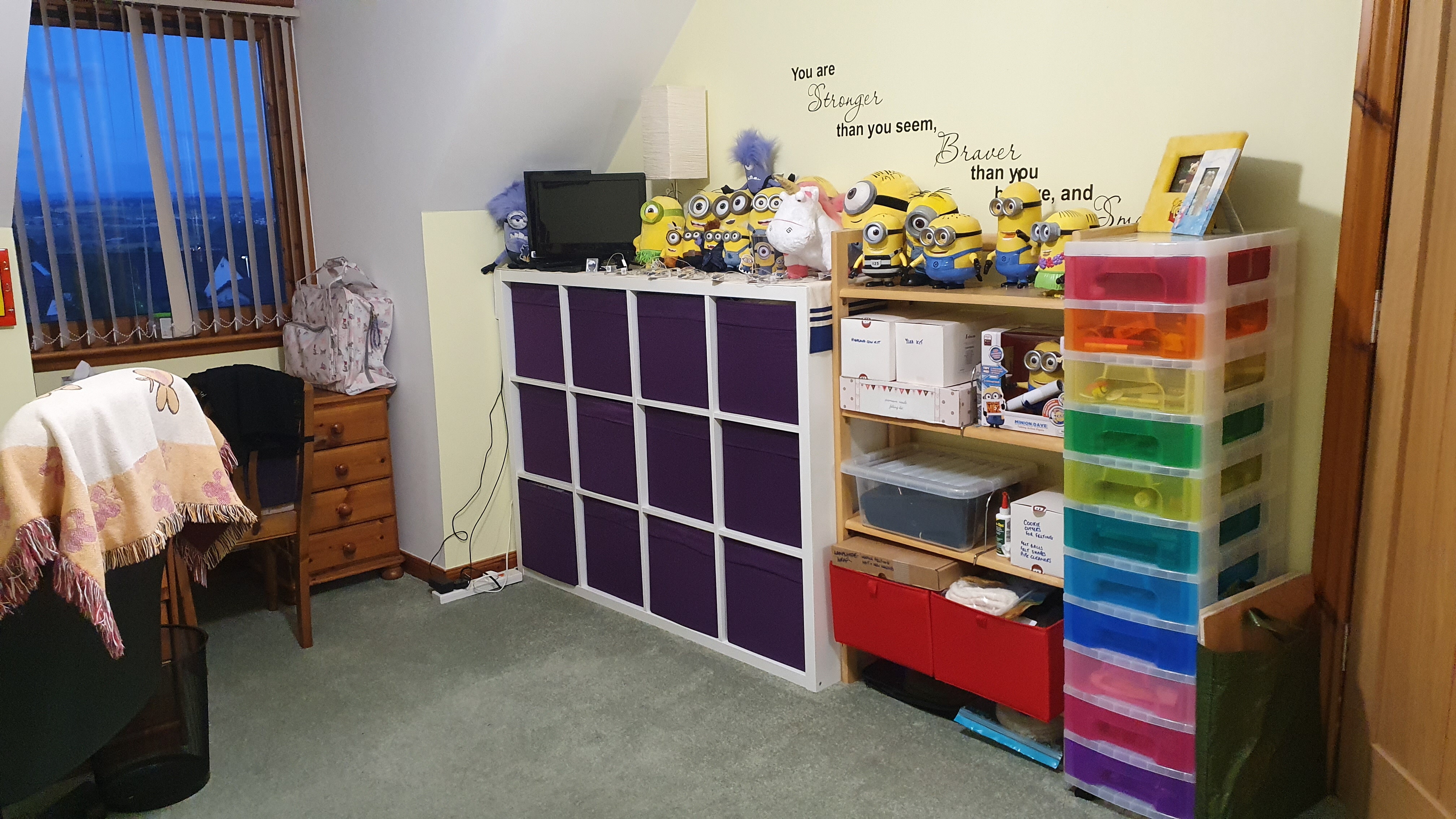 I did another reorganisation of the study/craft room to make room for my new loom. It looks much better and cutting the bookcase in half made a huge difference, I just need to hang the pictures leaning against the wall. That’s where my new loom will fit. Some Minions have moved into our bedroom and living room, as they wouldn’t all fit!