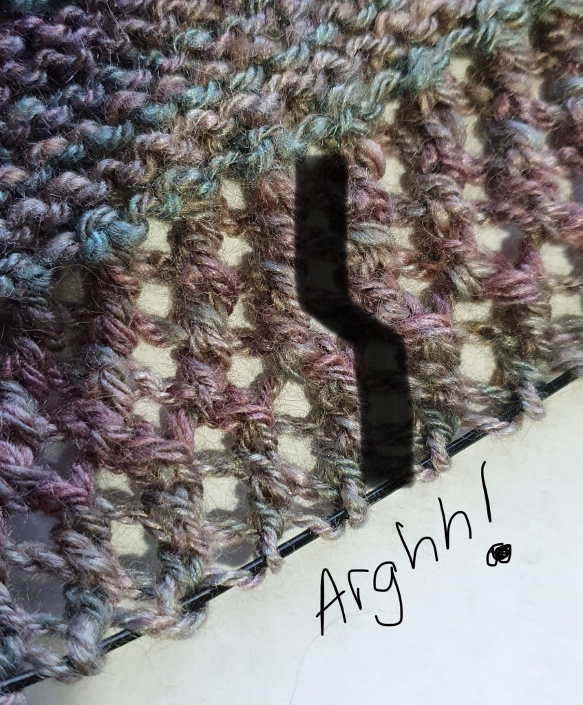 **Okay this post was scheduled to post and on Saturday evening I noticed an error and I’ll need to go back I think 6 or 8 rows of the lace because on one side my lace has a misalignment. It is more obvious than the photo may suggest. So I’ve added a line for you to clearly see arrgghhh!