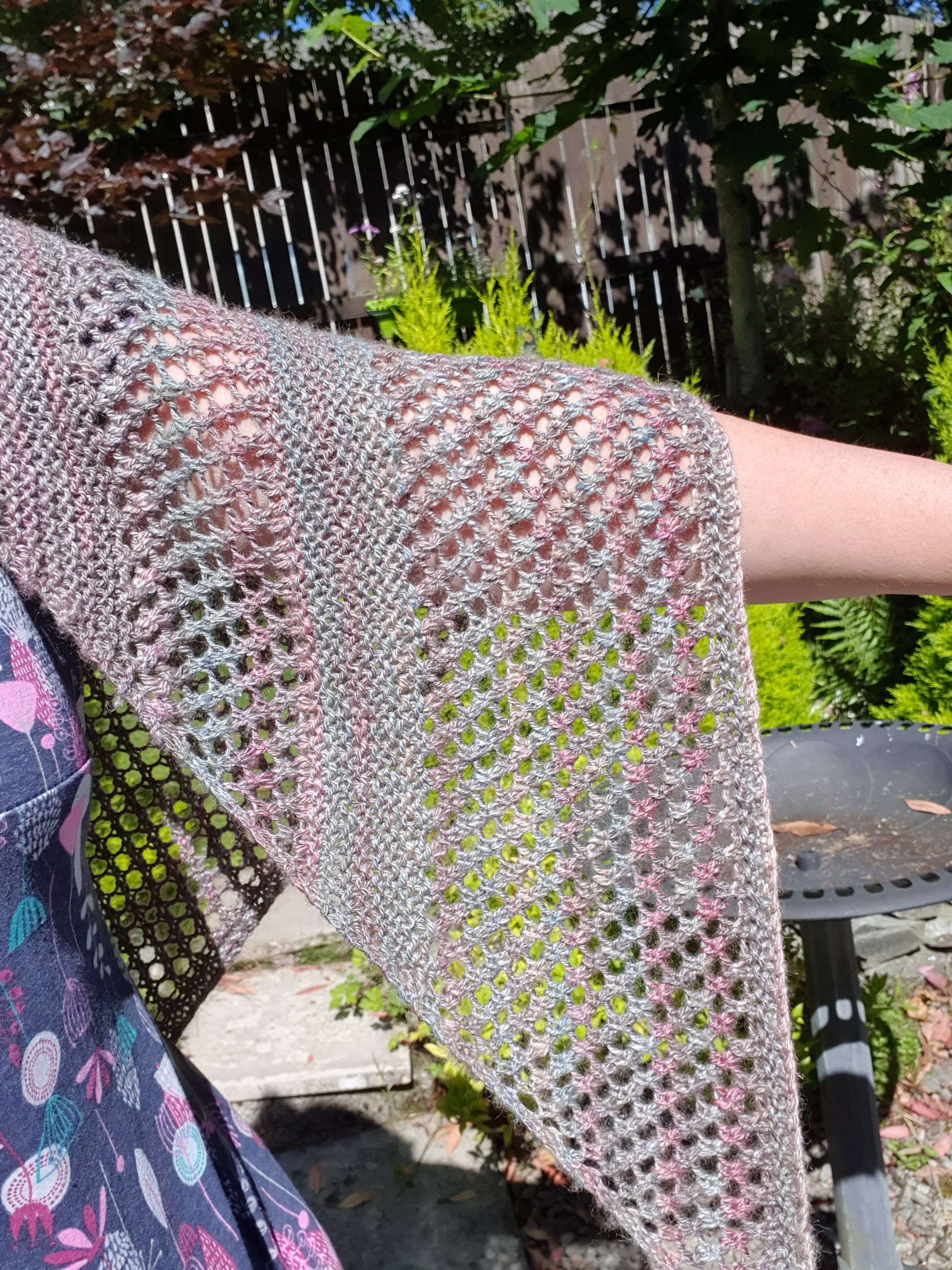 I really liked this pattern and I notice in Ravelry it has 12,709 projects, so it is clearly a popular pattern. It was easy to follow, I did mess up once and had to rip back but then I learned to notice the central spine and made a note of the left and right sides, and when knitting 2 together which side the yarn over stitch was on. After that I was fine and it pretty much whizzed along. Well just over a month to complete is whizzing for me.