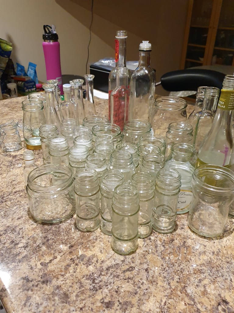 In normal times we do go camping and have a couple of holiday cottage visits so I’ve kept some small ones for oil, vinegar, washing liquid etc that we don’t want to buy plastic packs of. I have berries in the freezer to make jam with and that’s why I’ve kept some jars. But the rest will go. I don’t need the vast majority.