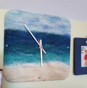 2. Freaking LOVE your clock. What a fantastic idea!! I’ve stopped putting up a clock above our pantry door because I’ve broken 3 – every time there is a time change I can’t seem to correctly hang it so it falls off. Maybe a felted clock wouldn’t break??? Your purple hat does look terrific on you. Glad you at least got to visit the beach even though it’s still cold. Love your “it’s a good price, etc.” rabbit hole for yarn buying. I have no more space yet I keep buying yarn!