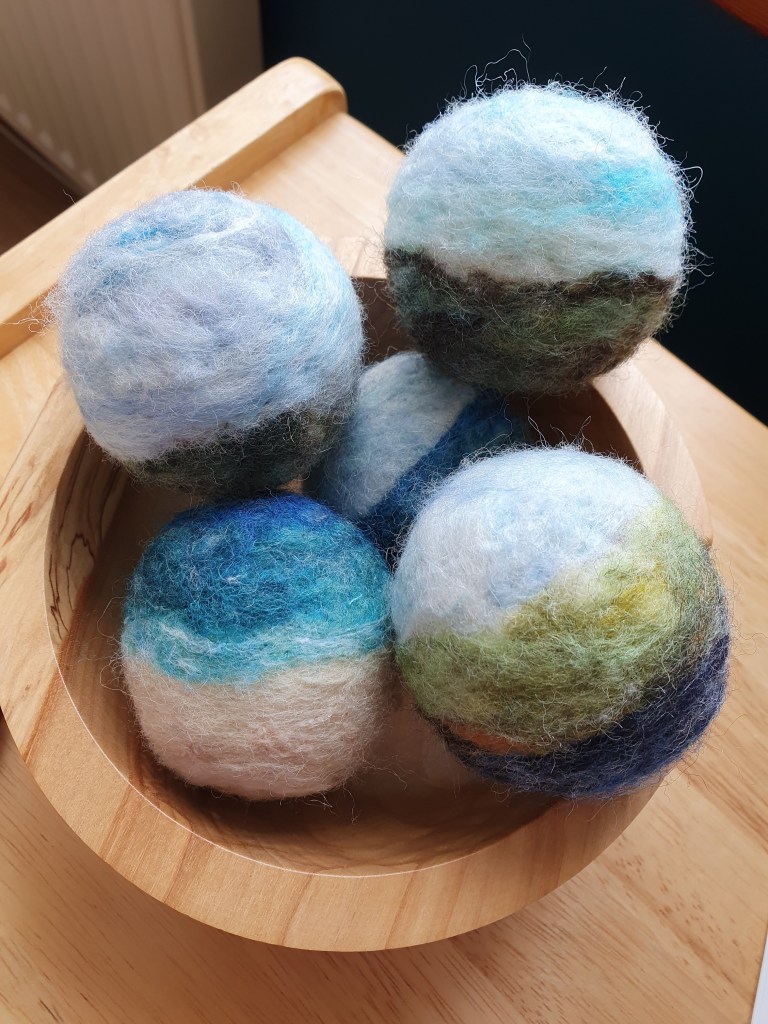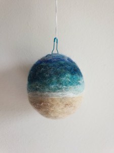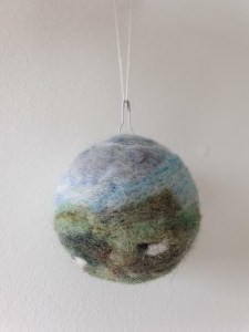 Baubles…not just for Christmas! Inspired by the Highlands, they have removable bulb pins so could be used as a non-hanging ornament instead. I make them with UK Shetland wool and decorate them with hand dyed wools. The sheep are all made using the wool from a sheep called Roxy on a friend’s farm.
