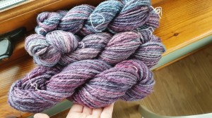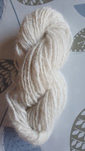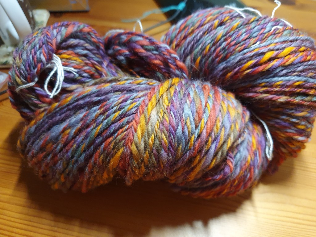 • Pair of socks with homespun yarn โžก๏ธ I have spun BFL & Seacell yarn to make these, just need to cast them on!