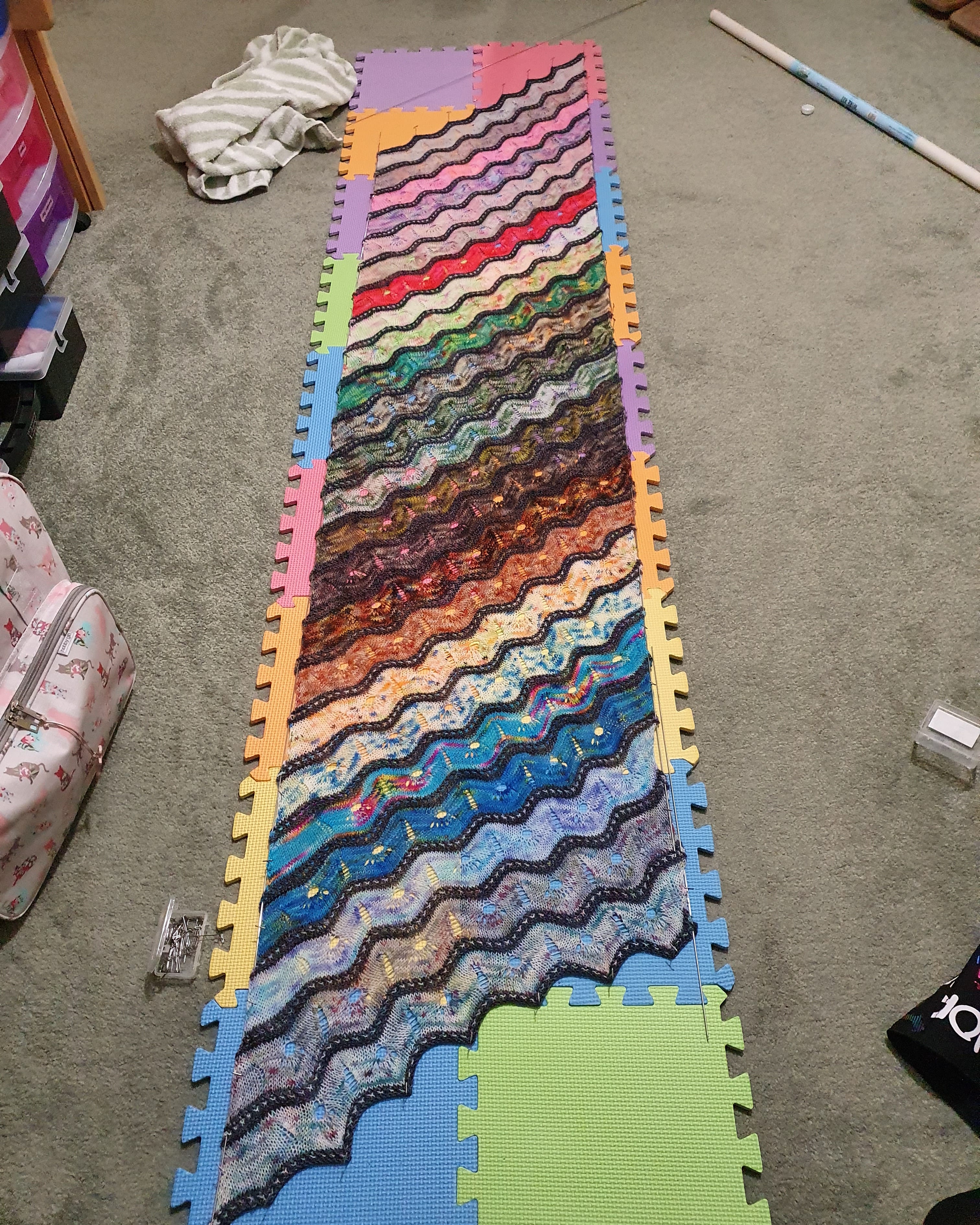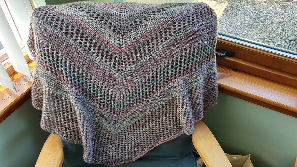 • Project with mini skeins from 2019 advent – I chose ADVENTuresome Wrap by Ambah Oโ€™Brien โœ… week 30 (detailed post). This thing is huge…I’m finding it isn’t warm enough for Winter or even Spring/Autumn, but it is too bulky to wear outside in Summer. It is not a practical item! No more mahoosive thin shawls for me…however I love the yarn colours and loved knitting it so that’s fine.