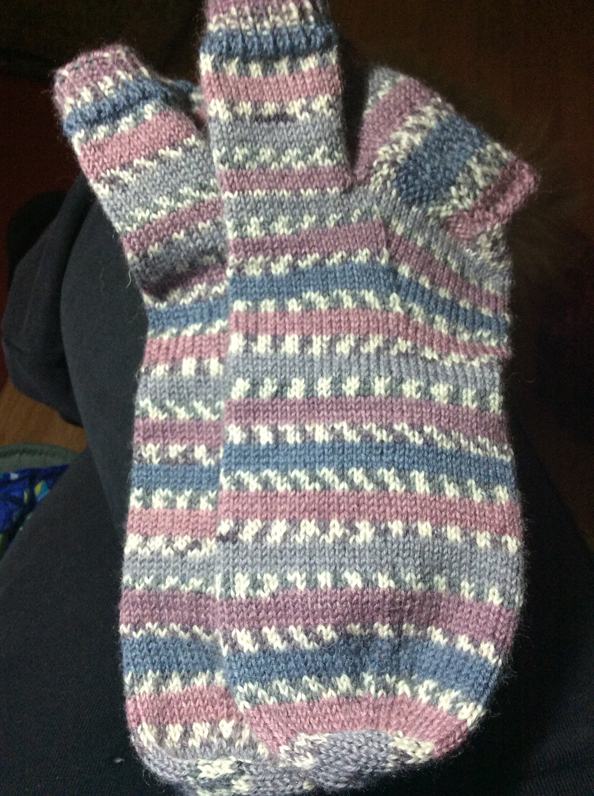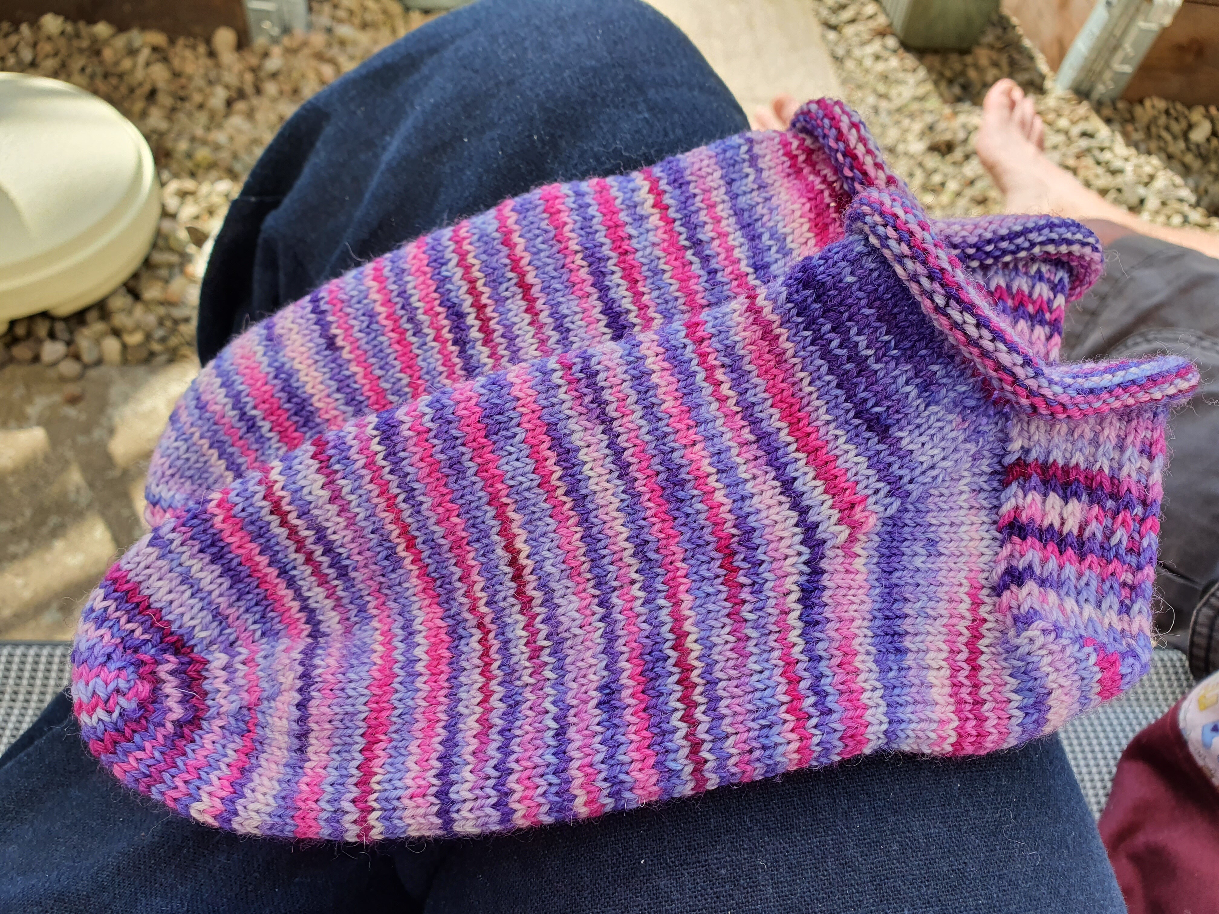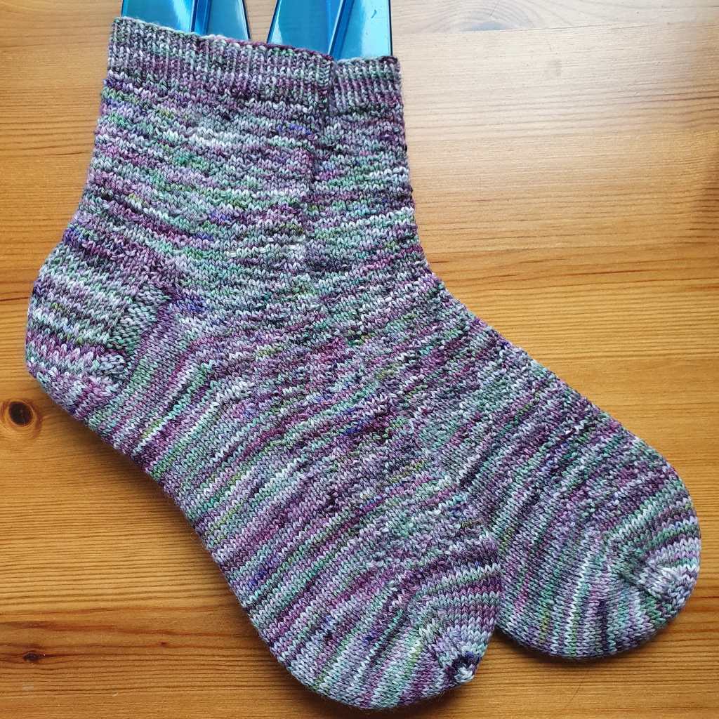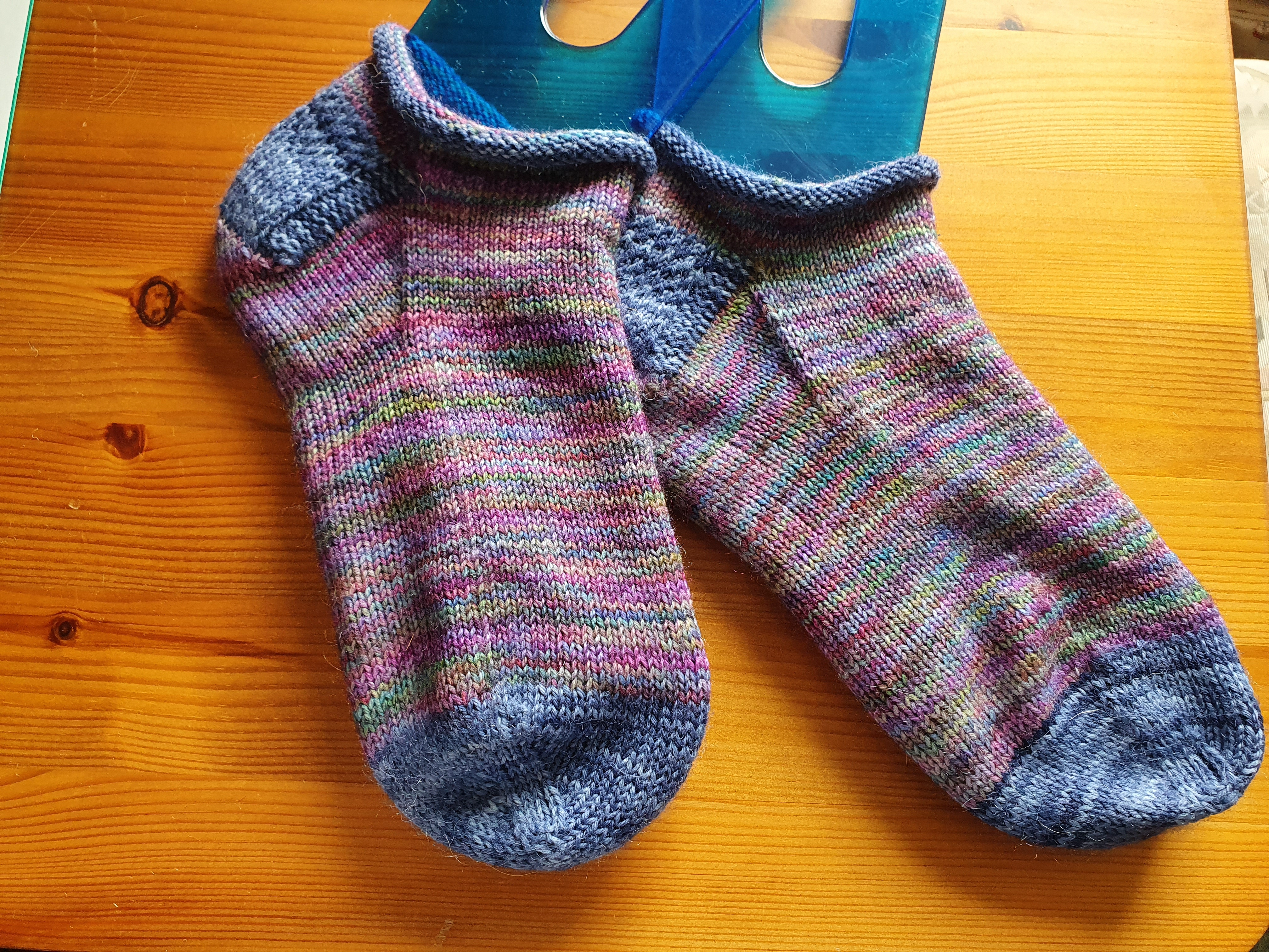 • More shortie socks: Hybrid of RCR with HES heel โœ… week 8, Rose City Rollers โœ… week 49 I normally knit all my socks with 2mm needles, but this pair I used 2.25mm so it will be interesting to see how well they wear in comparison. Less stitches makes them quicker to knit but I suspect they’ll wear through quicker.