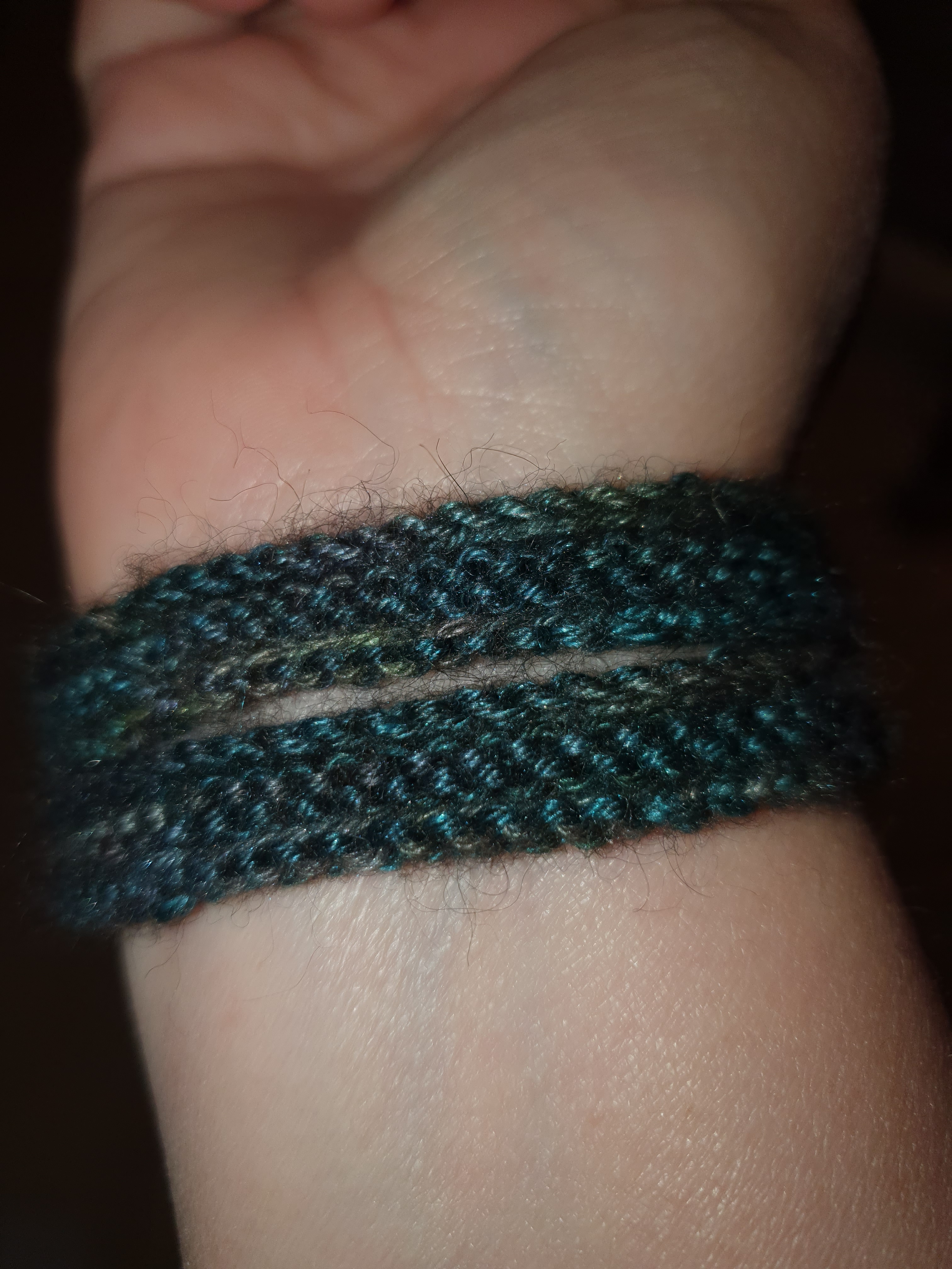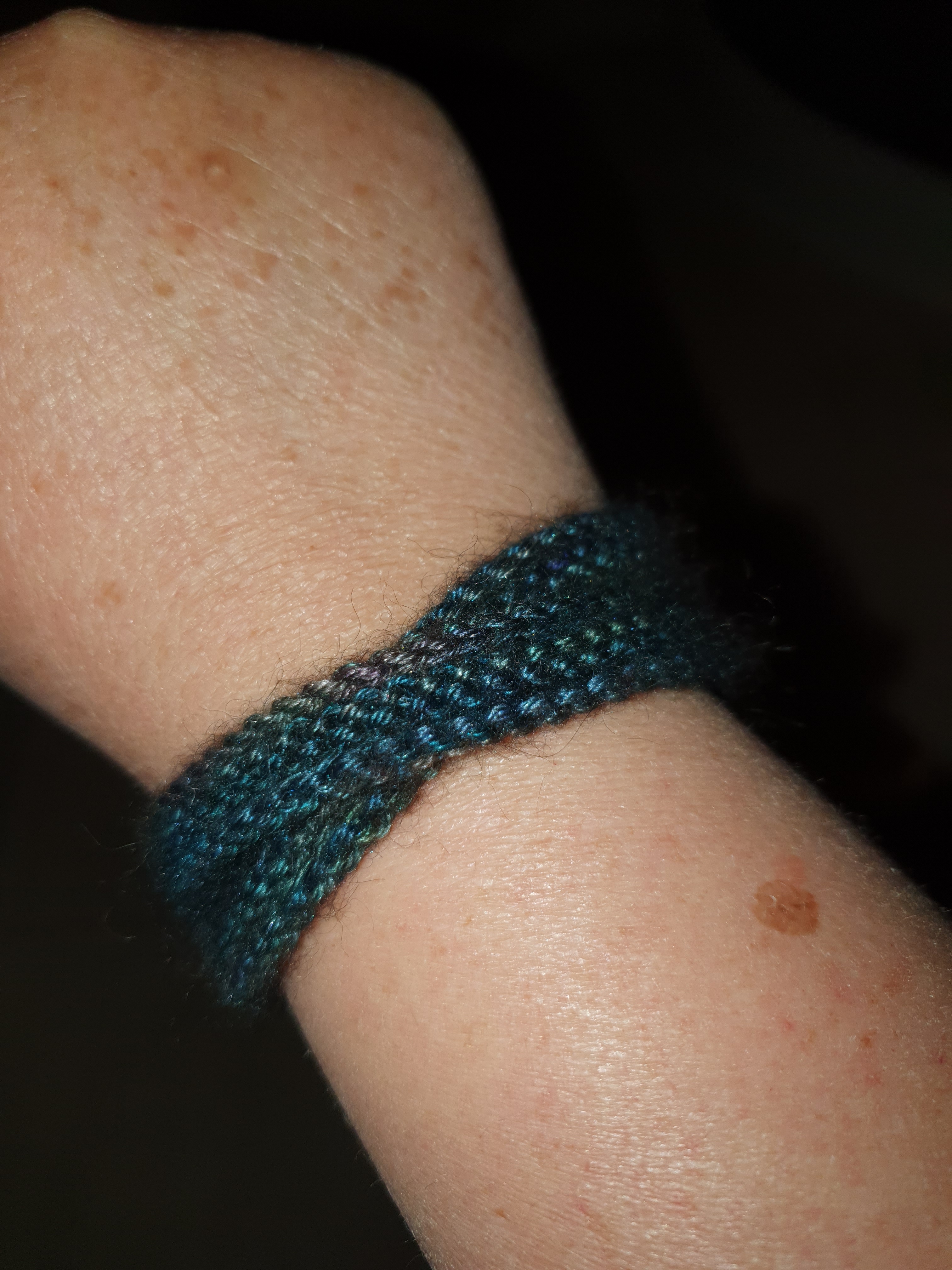 • ๐Ÿ†• Stash Bracelet by Riv Creative (Coastal colours yak & silk 4 ply) โœ… made week 51 โค A late addition to the list and I can see me making more with fancy yarn scraps. Very quick and only uses about 3.5g of yarn!