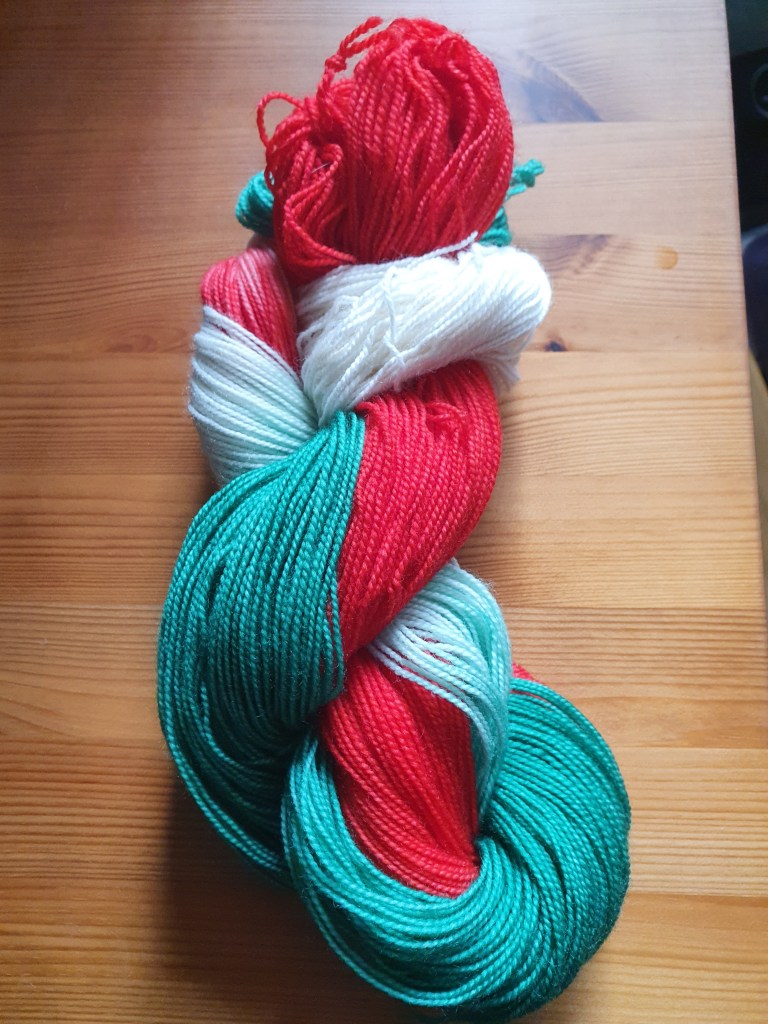 • Another go at Christmas โœ… week 15 I killed two birds with one stone here by making my Christmas yarn also my self striping yarn. I will definitely dye more self striping yarn in future.