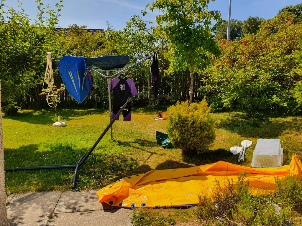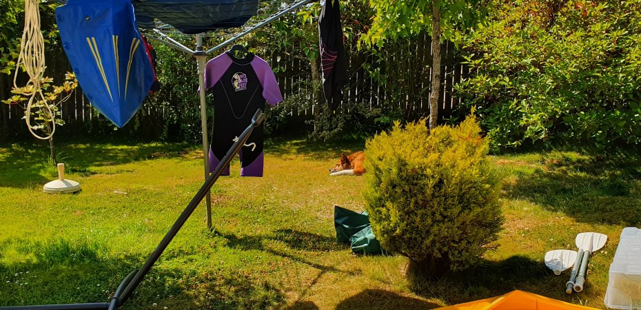 I have just ordered myself a stand up paddle board and all the bits, so hopefully that will arrive in a week to 10 days. I have been on a SUP a few times previously and had a go on my friends on the way back across the loch with me towing the little canoe, she wanted to swim! So I hope the good weather now sticks around for a bit. Unfortunately no photo of me at the lake but here’s everything drying when I got back.