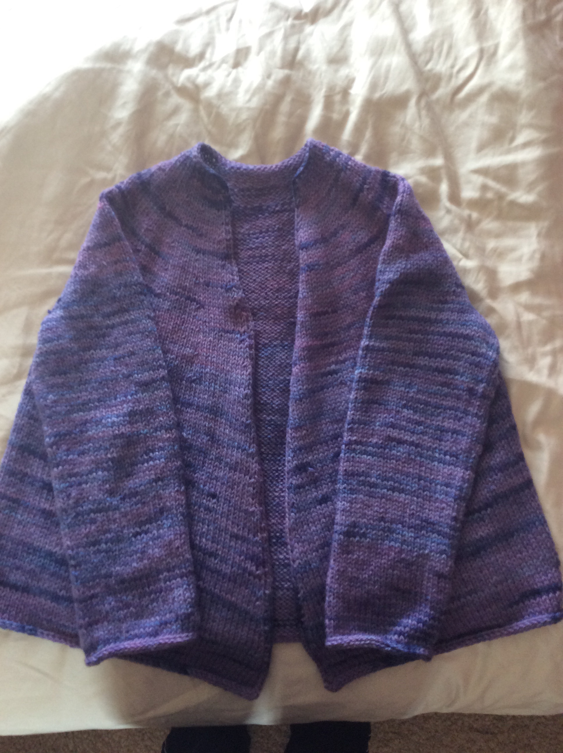 • added a single crochet around the front sides, instead of knitting a border. In hindsight I wish I had done icord edges during the knitting of the body, I didn’t have enough yarn left to add an applied icord edge.