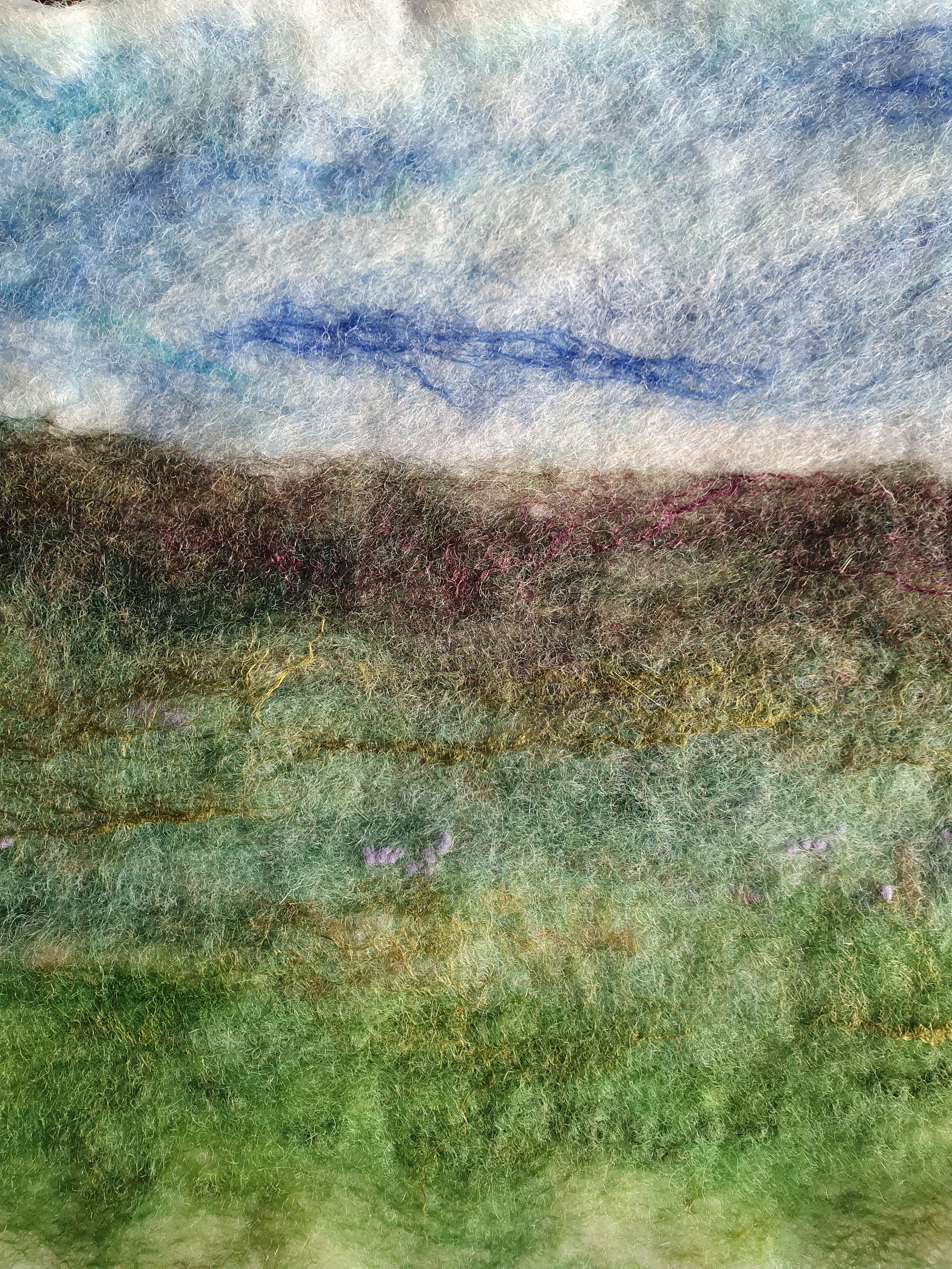 I have tried a couple of lampshades with nepps in them (little lumps of wool). They seem to be holding so far, but I will iron them and run a lint roller over and see if they seem secure before constructing the lampshades. Oh and I need to needle felt some sheep on the landscape. When held against the window the dots are more obvious, I think I’ll add an extra label to these ones as they may not be what everyone would want when lit. Hard to know.