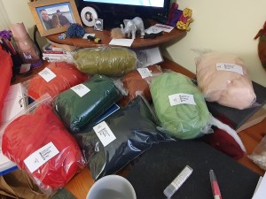 • The acrylic, ramie and bamboo all felted very easily with the needles. The cotton was more of a challenge and once it did felt it was sold and so attaching the hair became an issue. I will have further plays with the fibres. For wet felting they would all need to be blended with wool or have wool as they won’t wet felt alone