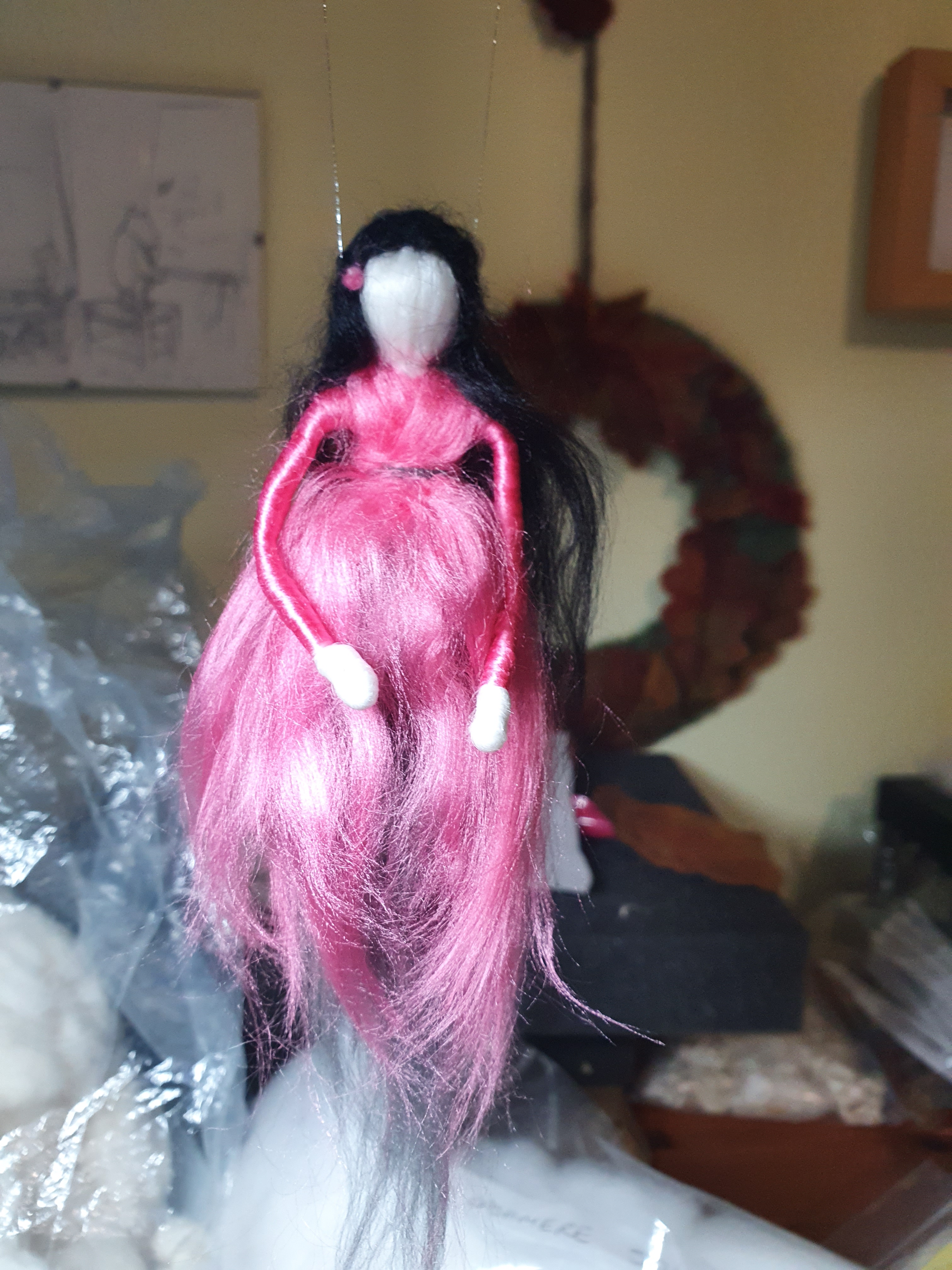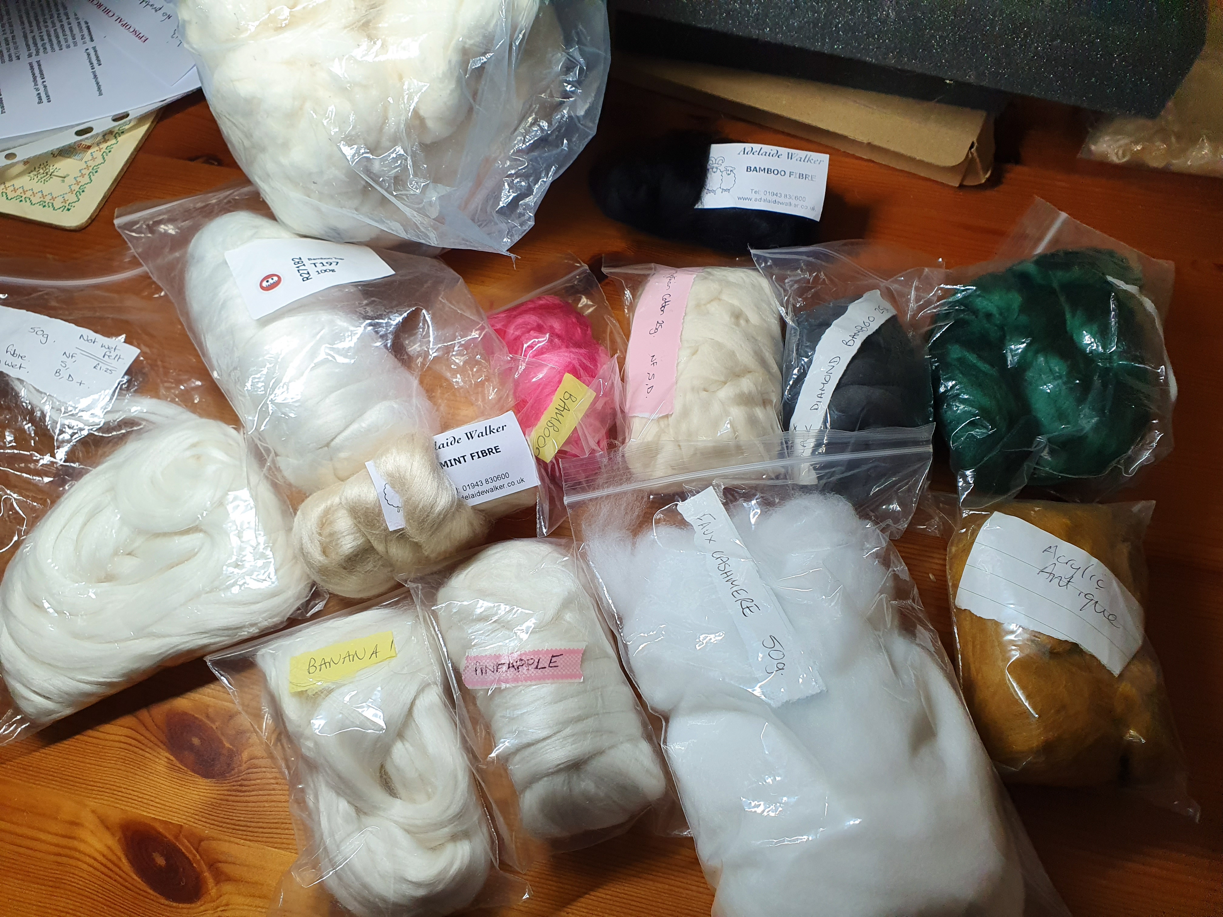 I made a couple of vegan fibre fairies for the shop. They are made using a variety of plant and manmade fibres. I’m not sure if there’ll be of interest but I have a selection of fibres like ramie (nettles), cotton, bamboo, banana, rose, pineapple, faux cashmere?! and acrylic plus more so thought I’d see how they cope with needle felting.
