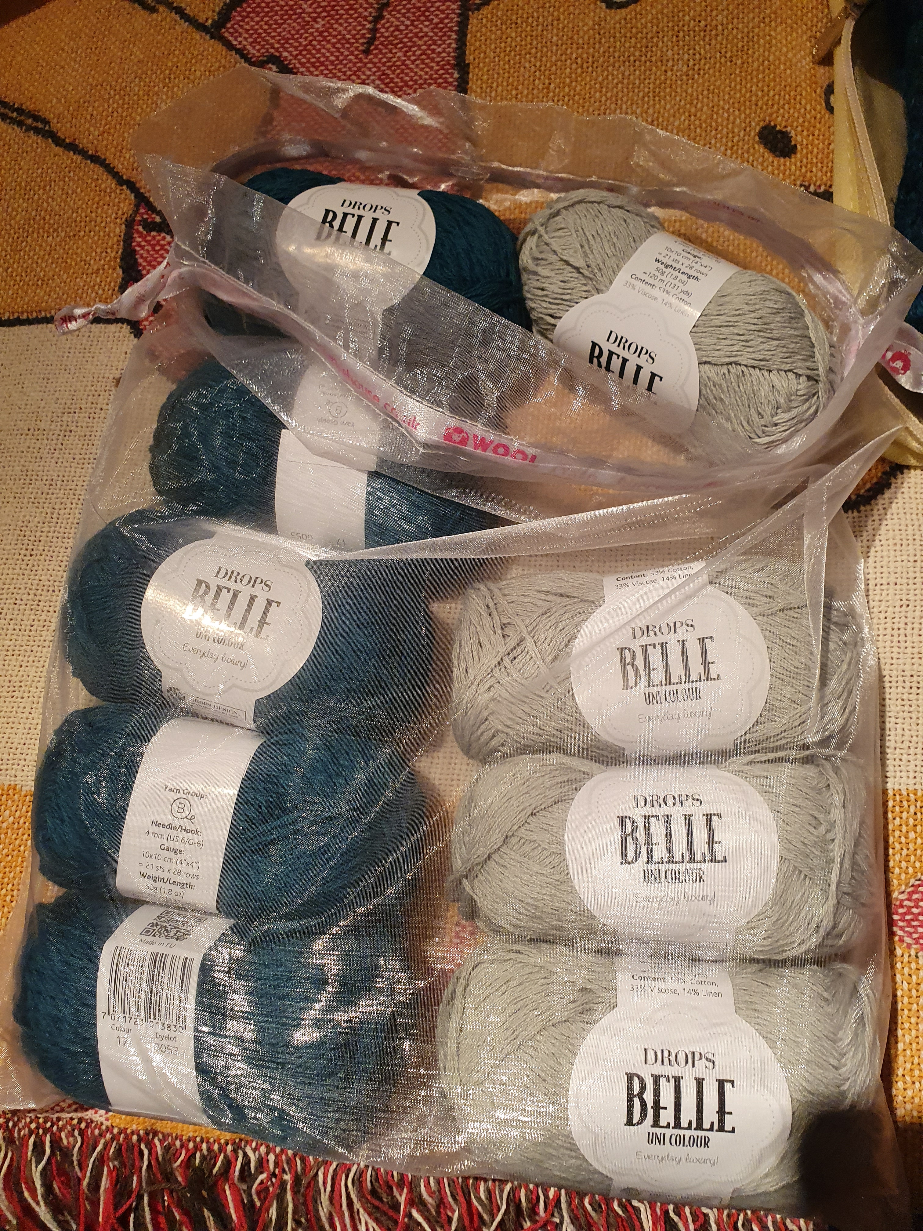 Drops Belle yarn for my Ship Shape jumper by Heidi Kirrmaier. By far the cheapest yarn I have ever purchased, but it’s been a popular choice for others who have knit this pattern so I thought I’d try it. Colours are Petrol and Silver. (Turns out petrol is almost exactly the same as teal feather Malabrigo I used on my chimney fire cardigan. 😆 To get free postage I also ordered some more colours of ribbon for my baubles that I make/sell.