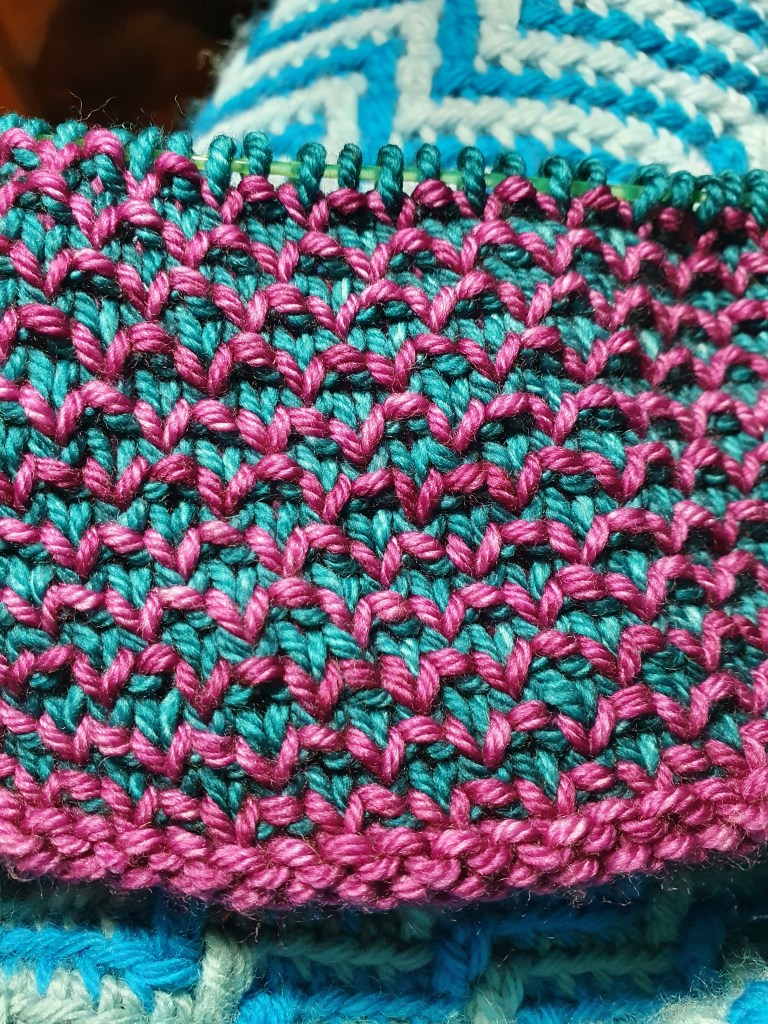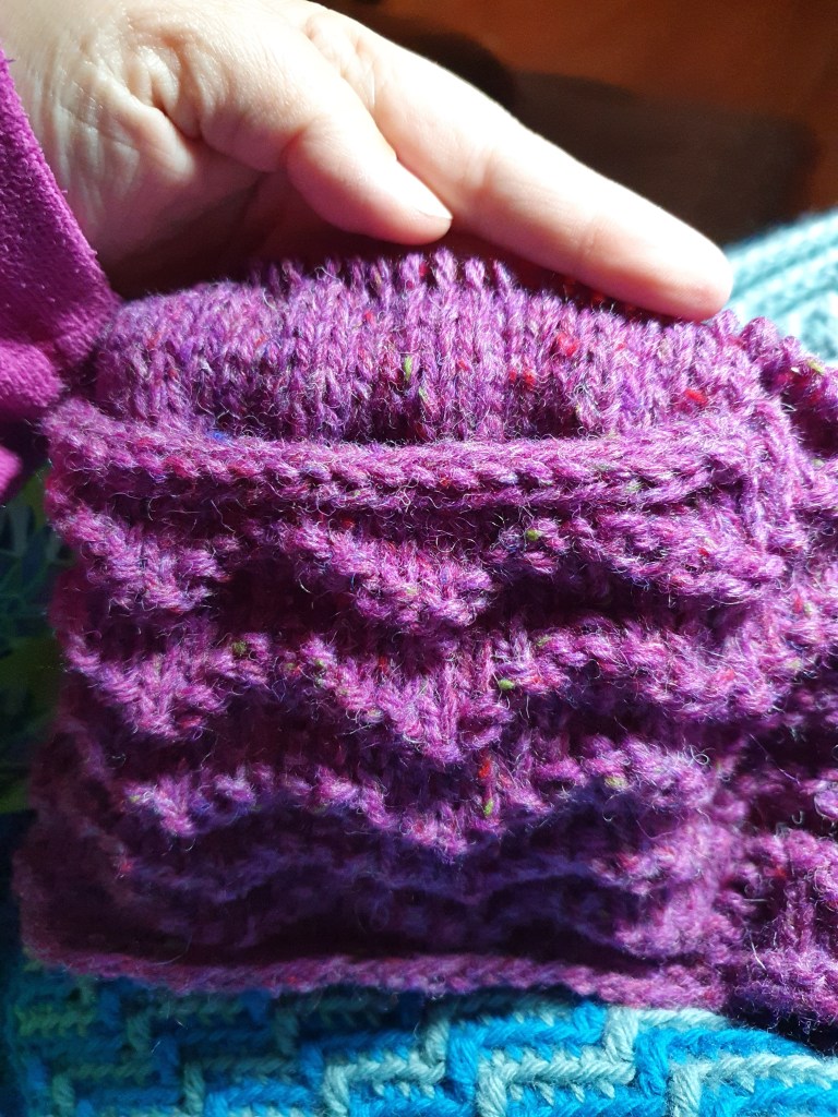 I also cast on a new project. This is the Versa Cowl which is designed for Malabrigo Rios yarn so I’m using up the leftovers of this yarn. There isn’t a contrast between the colour tones but I don’t mind. It’s coming out in a pretty pattern in colours I love.