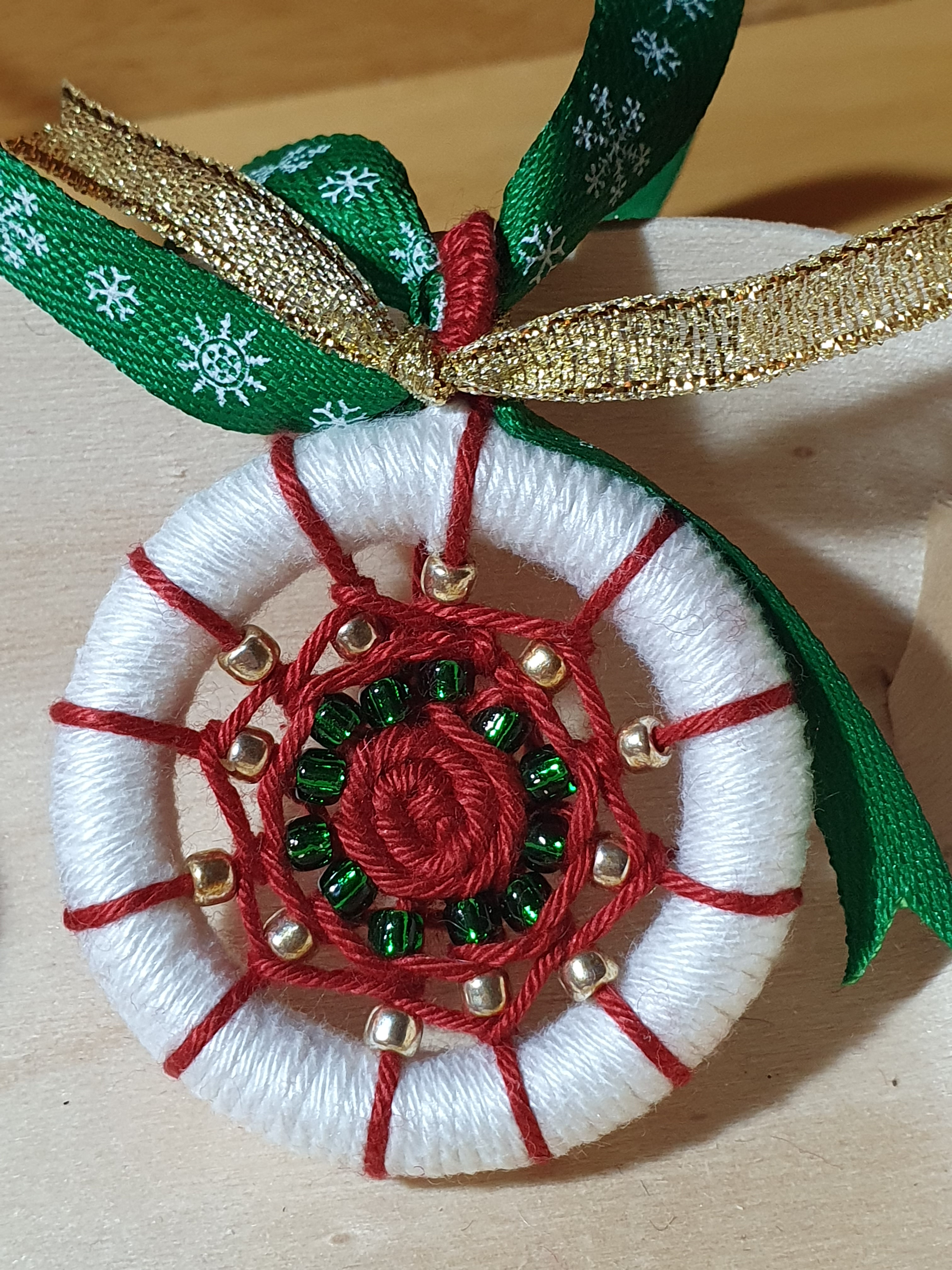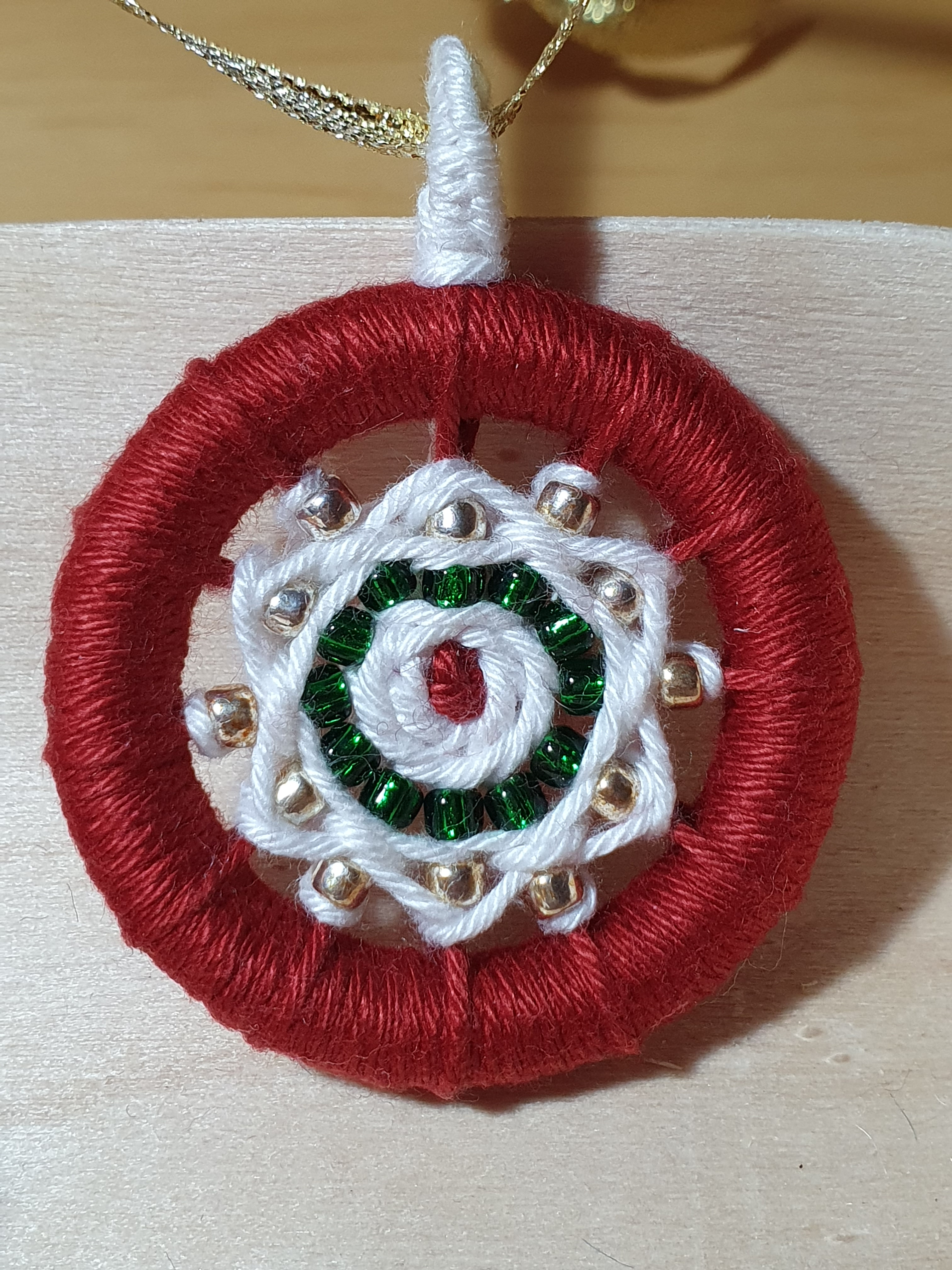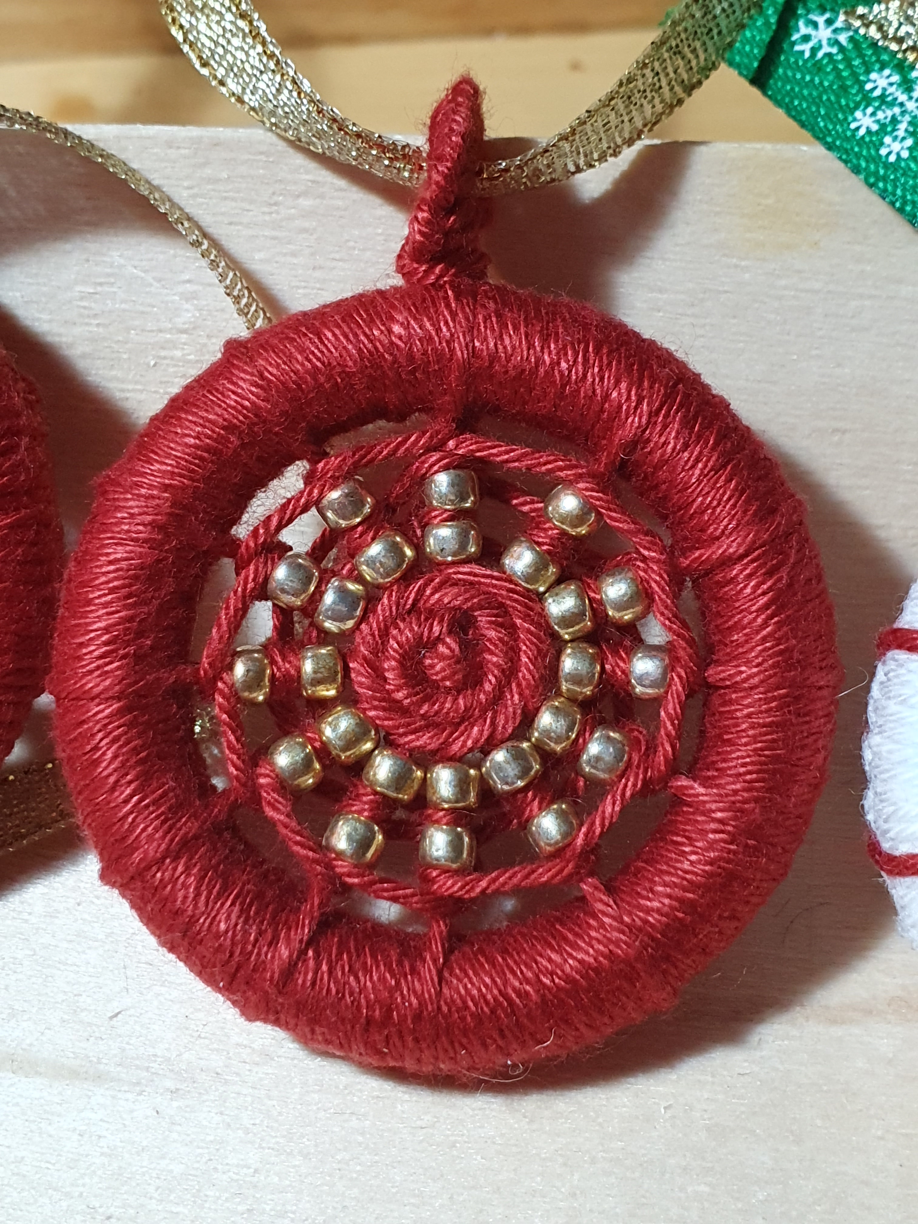 It’s funny I’ve seen The buttons and kits at Loch Ness Knit Fest and other fibre festivals and they didn’t appeal, I couldn’t work out what I would do with them. You can make mini ones for earrings but I don’t wear jewellery. I find them really enjoyable to make though and these are Christmas colours so will be nice on the tree.