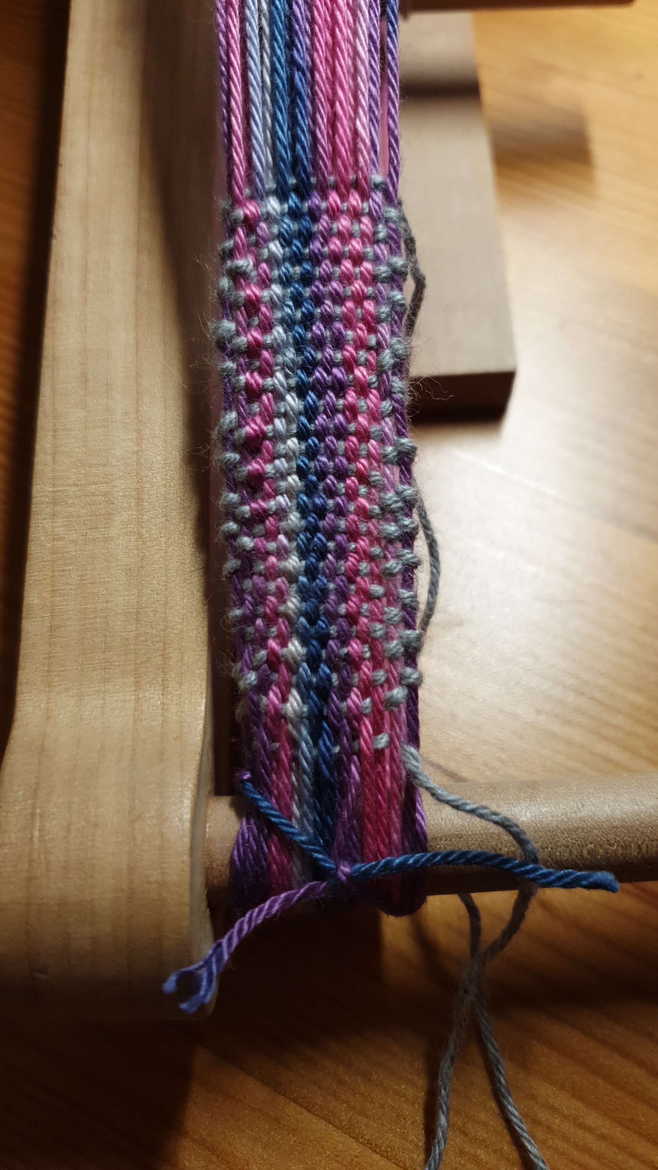 So back to my Inklette…You can hopefully see on the last photo that my tension and edges are getting better. This sort of loom gives you a warp faced woven item (the vertical threads showing). It is for making straps or belts or even some flat laces.