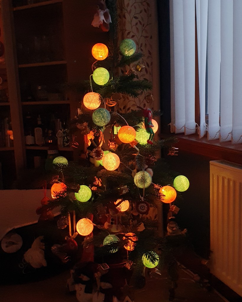 I couldn’t be bothered having the full sized tree this year, so have just put the top part of our fake tree into a pot and decorated it. This makes it a lot less cluttered in the living room.