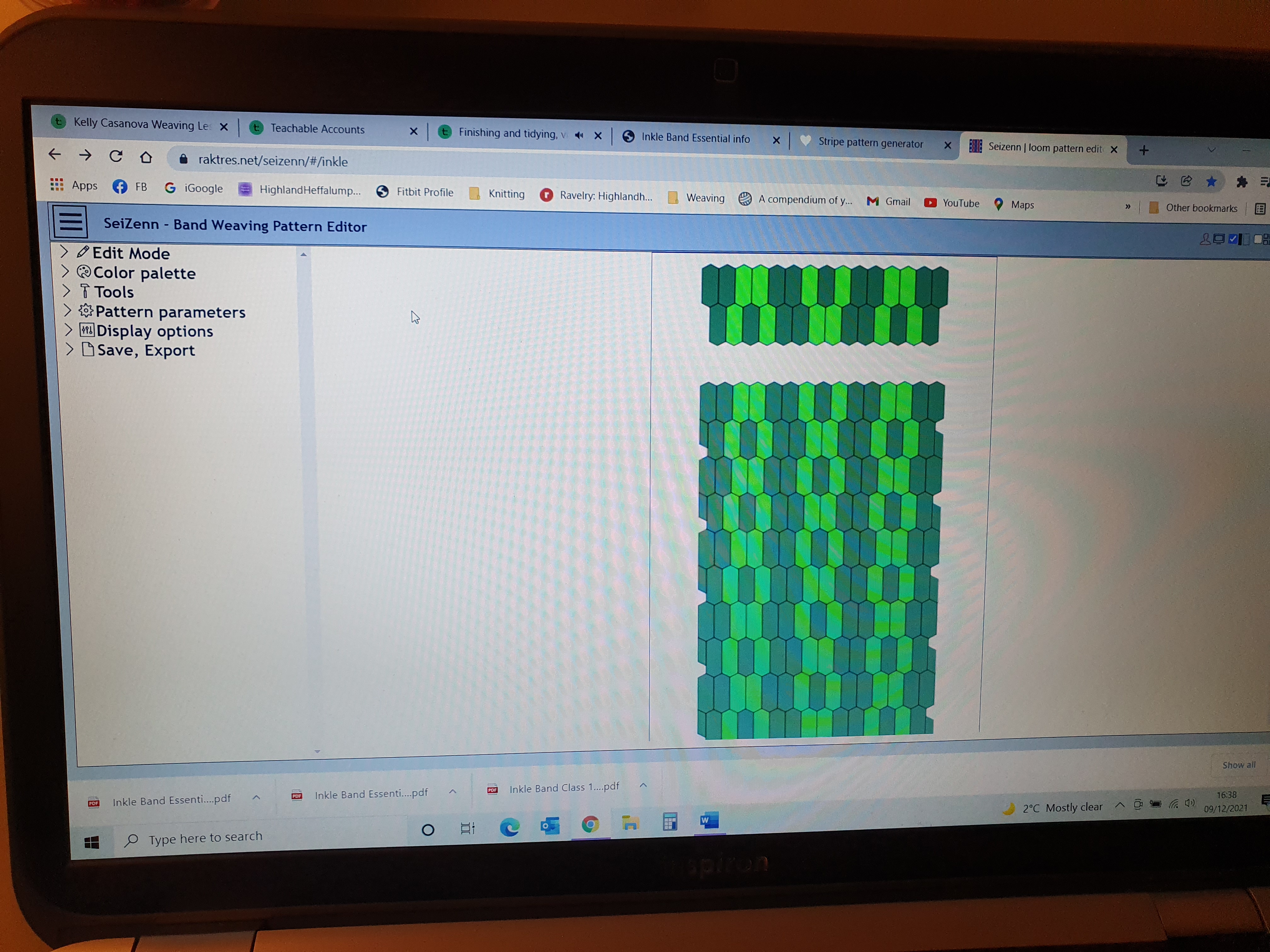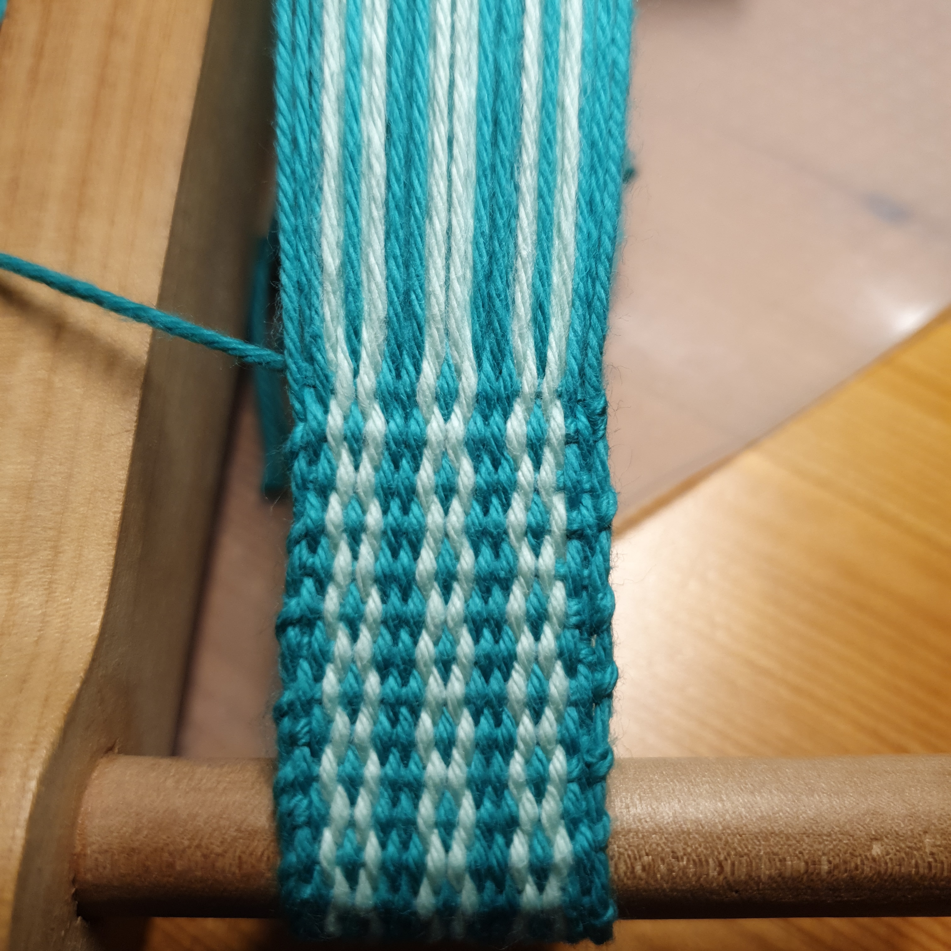 On a tutorial video I found out there is a free app for designing inkle bands. So I had a play, came up with a design, warped it and have started to weave it. This strap will be for the felted bag.