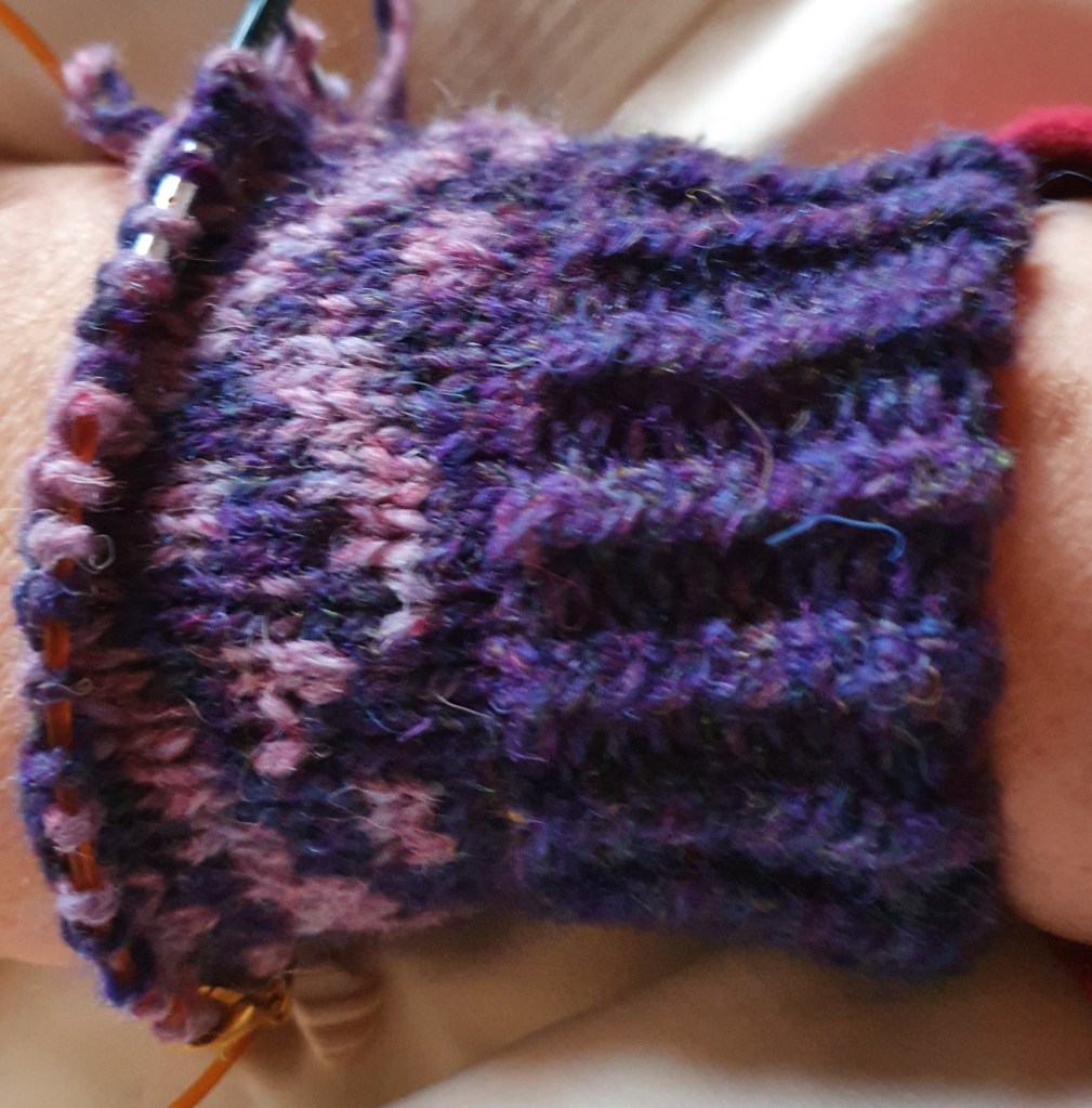I cast on a pair of Hasting Mittens by Tracie Millar (Grocery Girls podcast) using New Lanark DK wool. Having spent ages doing an Italian tubular cast on and it was clear I needed to make the size smaller so had to rip it out, so on my 2nd attempt just did a long tail cast on ๐คฃ. It isn’t as nice looking but my mitten cuff will be hidden anyway. So far I love knitting it and how it looks.