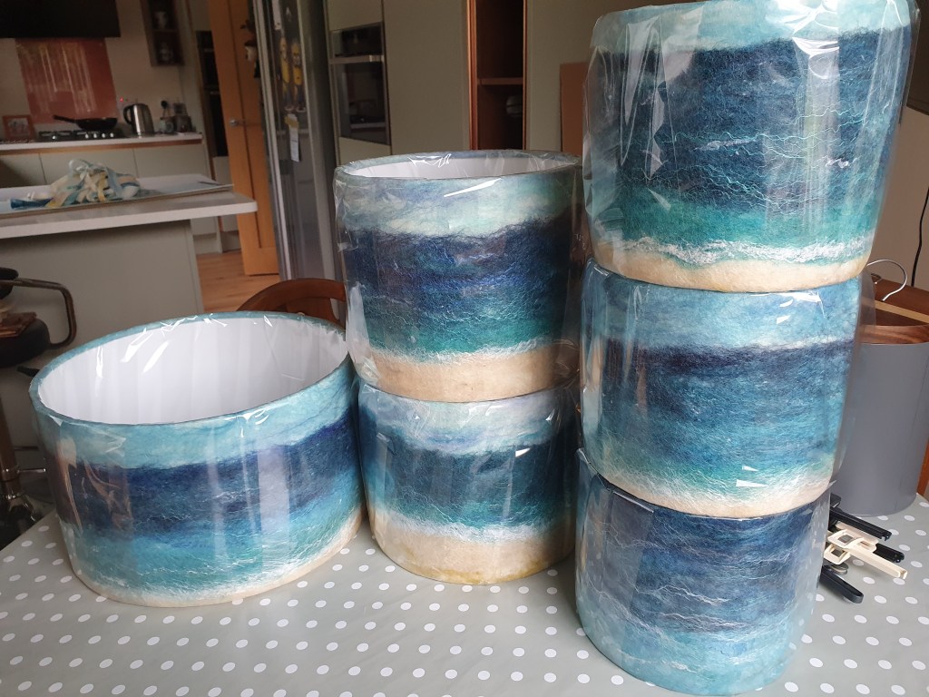 I decided to do them all with the Highland seascapes, with a plan to do some landscapes next week. What I hadn’t realised is that’s me now totally out of stock of 20cm and 25cm shade kits. So I only have 2 x 35cm and 3 x 40cm kits left. For these I’m thinking of doing something slightly different.
