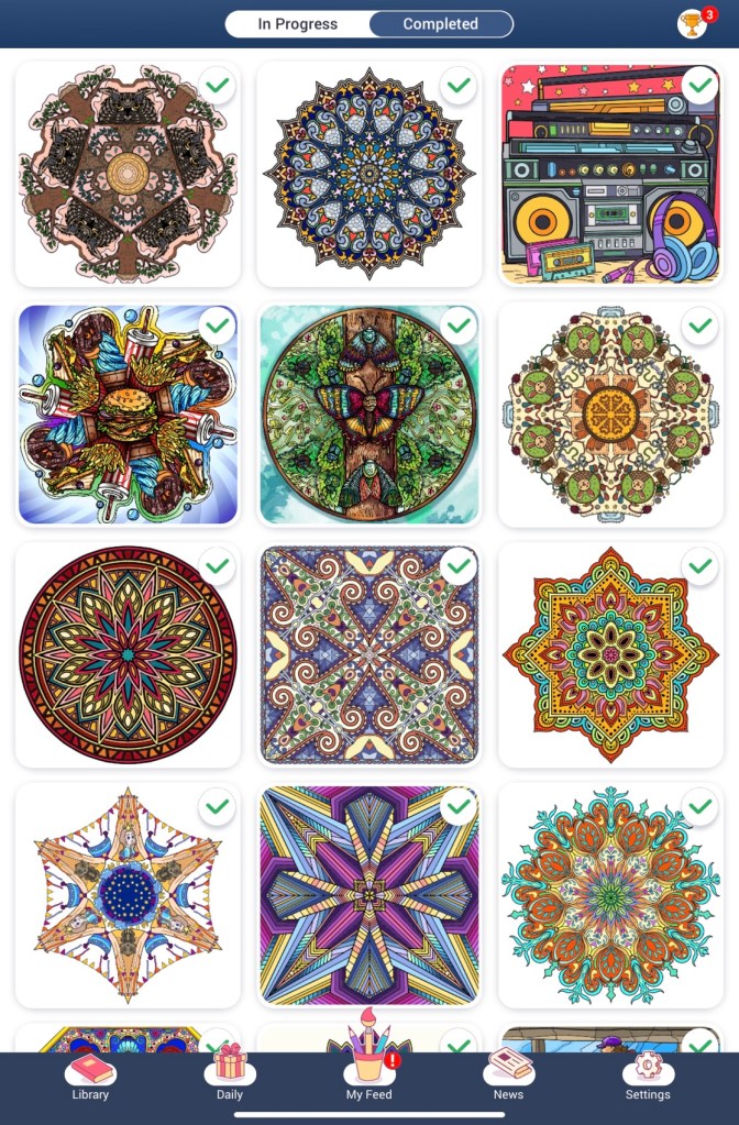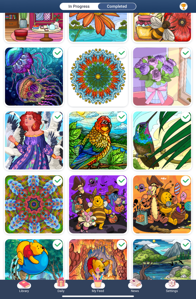 One of the reasons my crafting has been very light is that downloaded a colouring app on my ipad called Happy Colour. It’s very addictive but relaxing. These are just a few of the ones I’ve done. If you download it, don’t blame me when nothing else gets done, you’ve been warned. 😉