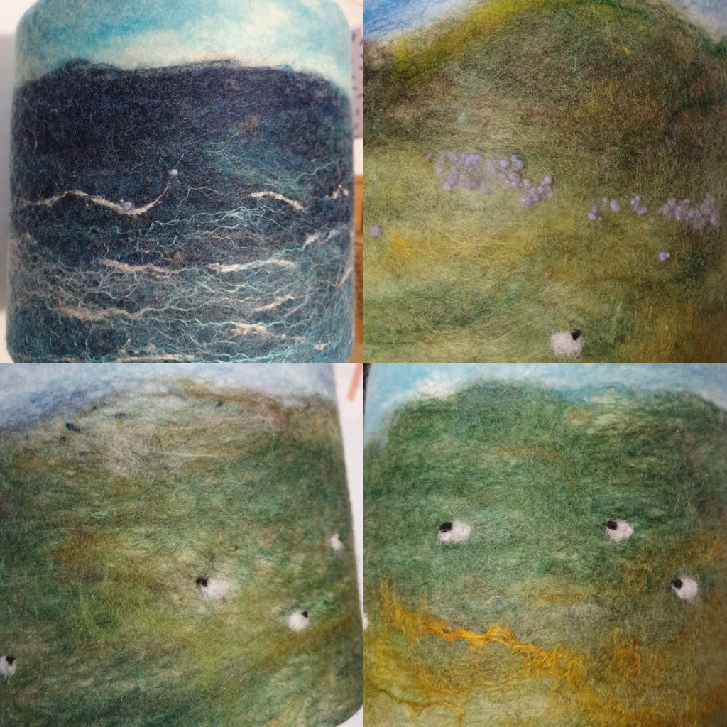 I added pale purple nepps to one so it looks a little like heather, when lit the purple colour doesn’t come through though and instead they show as shadowy speckles. I added some Teeswater locks to one and its given a lovely sheen.