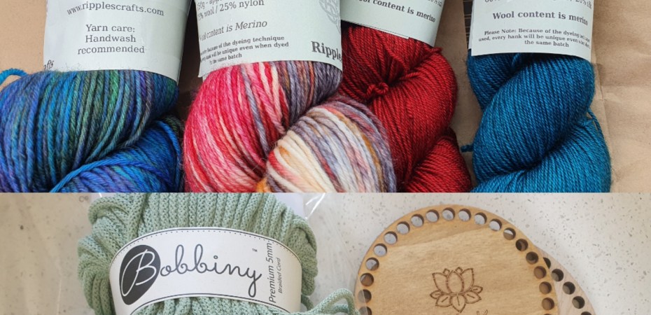 I also bought something totally new to me.  It’s a kit of thick recycled cotton yarn and some bases and a crochet hook, to make a bowl and a plant pot cover.