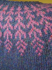 Once I’d finished that jumper I decided to amend the neckline of my Selfish Pullover (made using New Lanark Chunky) that I wasn’t wearing because the neck was too wide. I spent pretty much all day on Thursday unpicking the applied icord, the cast on edge and the ribbing, then re-knitting some stocking stitch section with decreases, new ribbed collar and then bound it off to find I couldn’t get my head through the hole!!! So I loosened the stitches, not easy to do when you’ve done the invisible sewn bind off. Is it now perfect(?), I hear you ask! Nope…it was a bit tight and scratchy. I have to laugh or I’d cry. I ripped it out AGAIN and did a twisted rib collar and it wasn’t right and was scratchy so I ripped it out AGAIN and now it’s just a rolled stocking stitch collar and I used the Elastic Bind Off from Lesley Ann Bestor’s book. I will wash the collar as that was new yarn and still a little scratchy, pretty sure I washed the rest of the jumper when I finished it earlier this year as that softer.