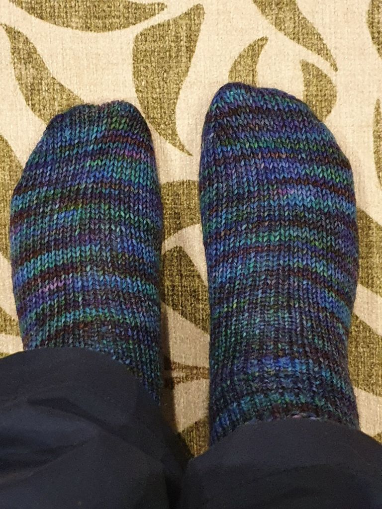 My DK socks are finished. These were 40 stitches on 3mm needles. Although on the photo the stitches look a little stretched they actually feel a little loose on my tiny feet.