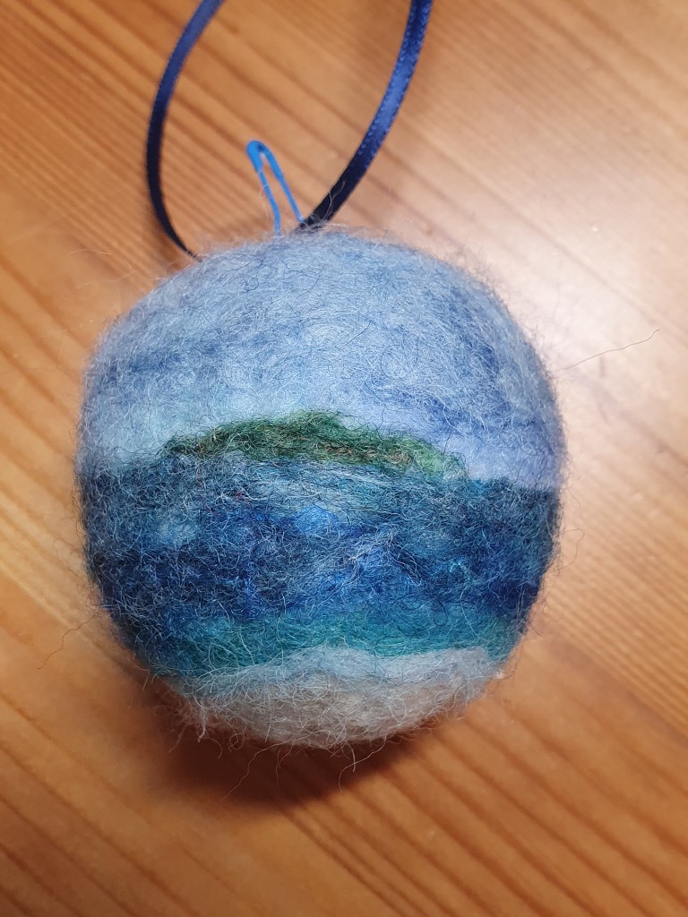 Baubles…not just for Christmas! Inspired by the Highlands, they have removable bulb pins so could be used as a non-hanging ornament instead. I make them with UK Shetland wool and decorate by needle felting them with mostly hand dyed wools, but they also can include silk and flax.