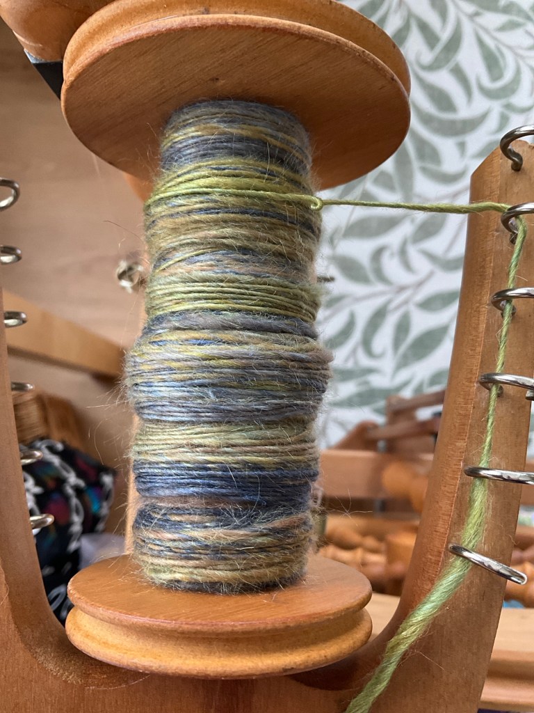 Instead I went back to spinning my favourite fibre blend, baby camel and silk. I have all these yucky yellows left from the advent so decided to try one of the acid yellows with some of a blue one…to make the yellow less obnoxious. (Sorry to any yellow lovers out there.) I’m going to chain ply it so we shall see how it comes out.