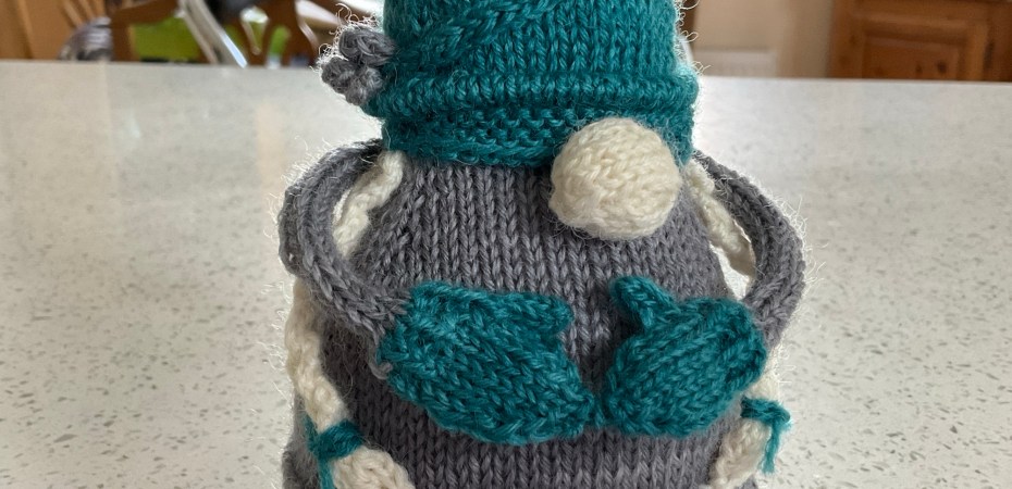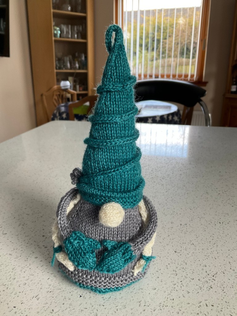 My female gnome, Gnorwen, is finished. The pattern is All Work, Gnome Play by Sarah Schira. The yarn is from Lamington Lass in the colours Beware the Jade Dragon, Pewter and Snowflake.