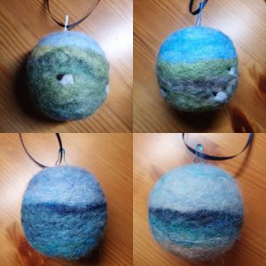 I needle felted 4 more baubles and dropped those at the Alchemist Gallery on Wednesday. (The photos are a little washed out it seems.)