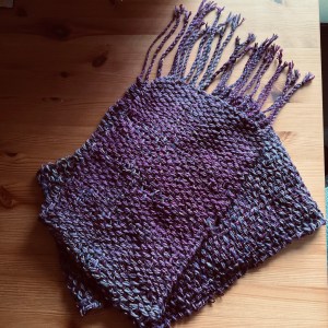 - ๐โ Just Wiggle It cowl by Sarah Ashcroft using handspun merino/alpaca blend. Started and finished week 34.