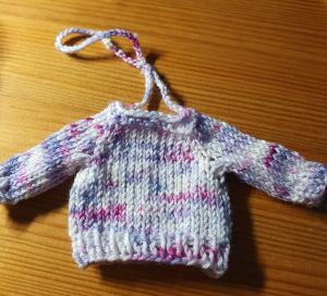 - ๐โ Mini Sock Yarn Sweater by Janet McMahon, using scrap 4 ply from a swap with Ali. Started and finished week 26.