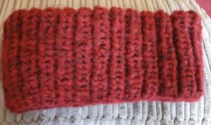 - โ Fishermanโs rib cowl by Merce Mitchell, using Rowan Brushed Fleece yarn in Nook. Started week 15, finished week 16.
