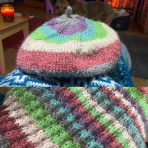 The main aim in this section was to use existing yarn or handspun, well some was brand new yarn โฆhey ho! I was probably being unrealistic, new yarn brings inspiration. My red Bisbis beret is my favourite.