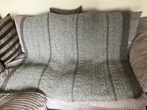 - ๐โ Gansey Afghan by Lena Skvagerson, using Isle of Auskerry Aran yarn (North Ronaldsay wool) in Seal/Slate. Started week 28, finished week 40.