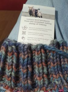 I’ve started the Leg Warmers pattern by Jane Richmond. The yarn is Isle of Auskerry yarn made with North Ronaldsay breed wool. I bought it when we visited Orkney (same yarn as my Gansey Afghan but hand-dyed by someone on Orkney). The pattern is 2×2 rib for ages so quite mindless.