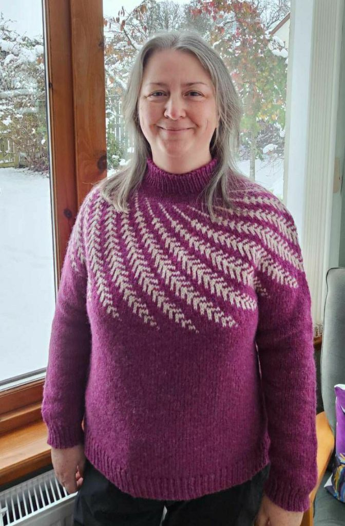 Wonderful. It was interesting to learn how you re-worked the neckline after finishing the jumper.